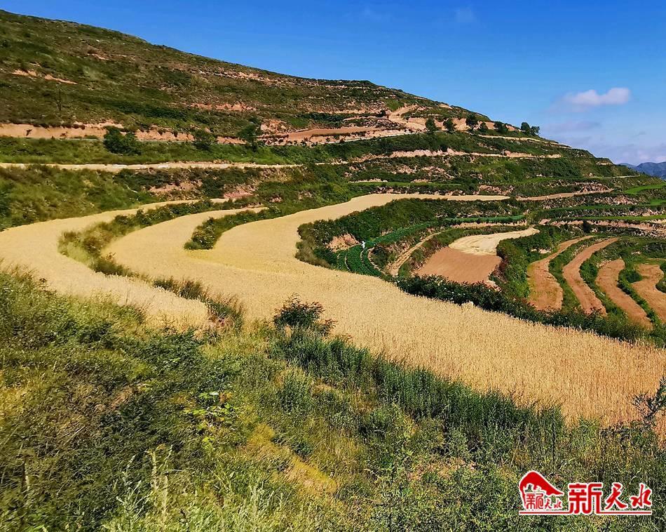 新天水訊 夏收時(shí)節(jié),武山縣溫泉鎮(zhèn)田間地頭到處都是忙碌的農(nóng)民和機(jī)械,金色的田野麥浪翻滾,滿目金黃,金燦燦的小麥和藍(lán)天相映襯,構(gòu)成了一幅夏收忙、糧滿倉(cāng)的豐收景圖。