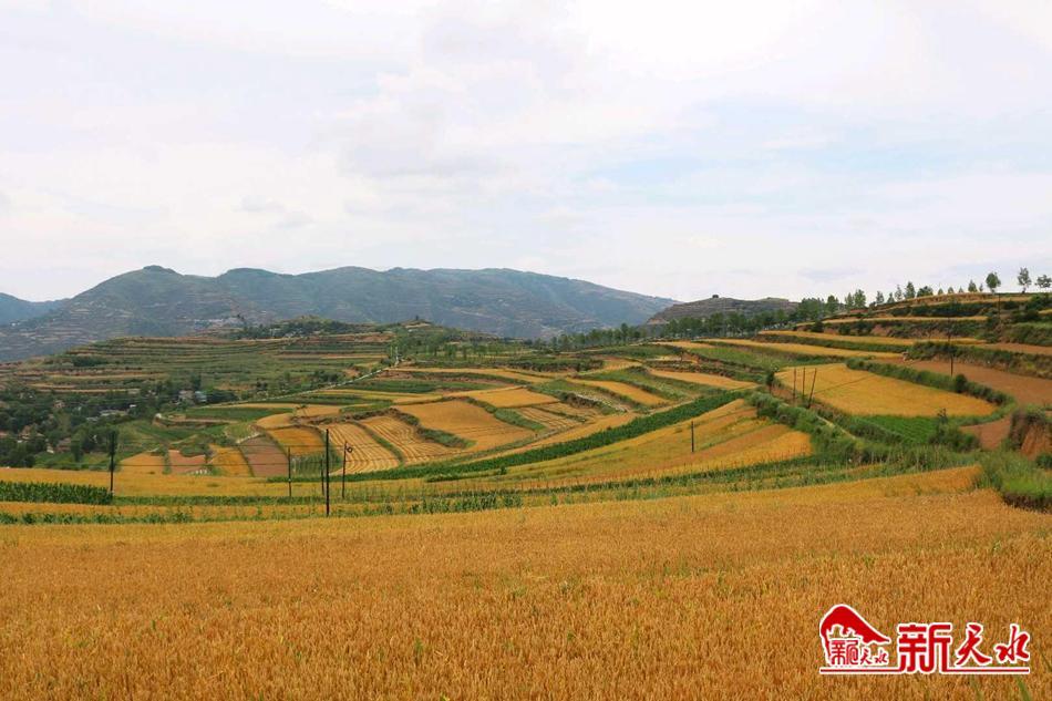 新天水訊 盛夏時節(jié),走進武山縣楊河鎮(zhèn)中梁村,層層梯田上,麥浪被金色渲染,微風拂過,帶來陣陣麥香。麥田里,仰頭飽滿的穗枝鋪滿了麥床,濃郁的麥香彌漫在希望的田野。