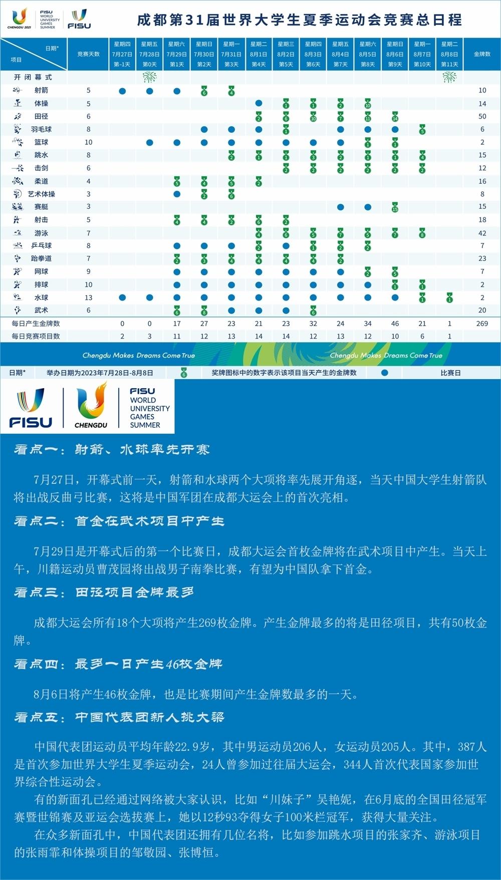 一圖了解成都大運(yùn)會(huì)賽程及看點(diǎn)