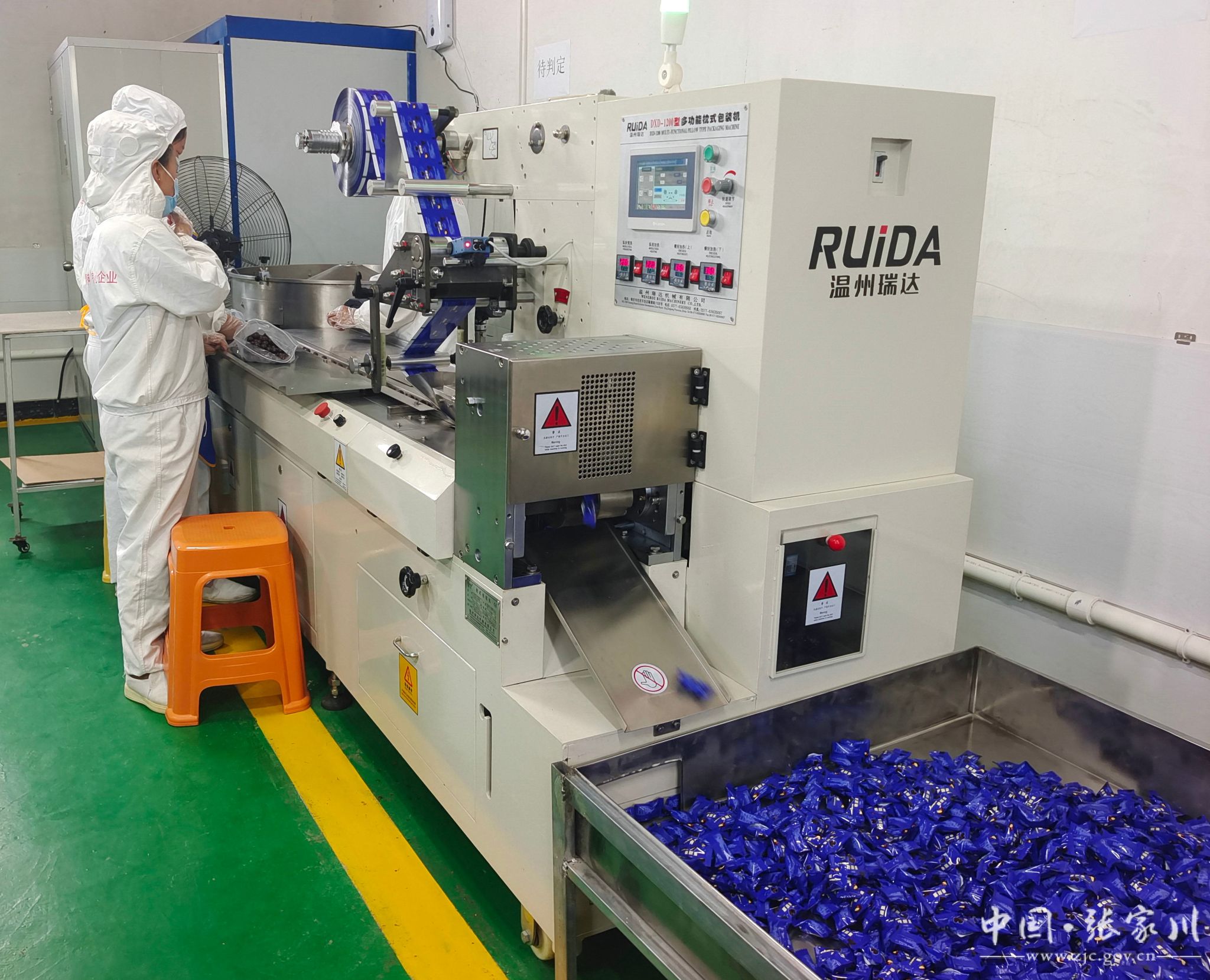 走進公司生產車間,全自動打磨、涂衣機正在研磨巧克力球,當光滑圓潤程度達到標準后,再傳送到下一個生產環(huán)節(jié),最后由智能包裝機分成規(guī)定計量的小包裝,再由人工裝盒、稱重、打上生產日期。