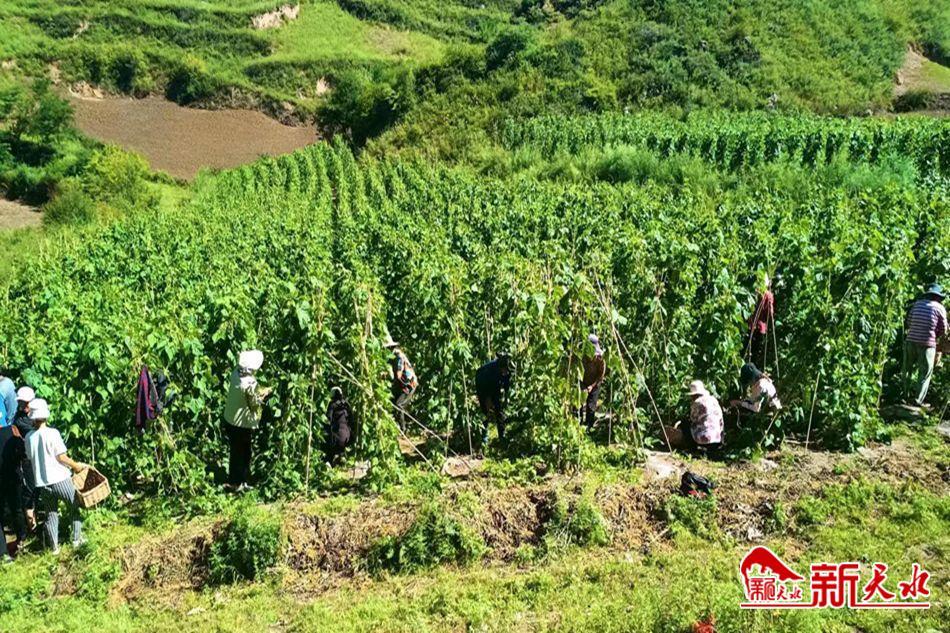 新天水訊 眼下,正值架豆陸續(xù)成熟、收獲、上市的季節(jié),一片片綠油油的豆角地里,一排排沉甸甸的豆角映入眼簾、豐收在望,村民們正忙著采摘、分揀、打包、裝車……田間地頭一派豐收景象。