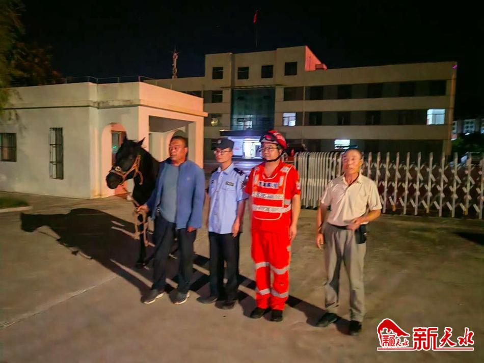 當晚8時28分,黑馬被順利移交麥積警方,民警在了解情況后找來當?shù)仞B(yǎng)馬戶暫時領(lǐng)養(yǎng),等待失主認領(lǐng)。(辛文)