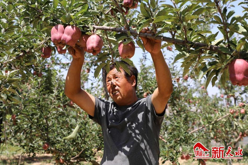 “你看,現(xiàn)在蘋果大多數(shù)都上色了,但被樹(shù)葉遮住的地方顏色上不去,就需要把樹(shù)葉掐掉?!?月21日,頂著烈日,東梁村蘋果種植大戶汪吉?jiǎng)僭谧约夜麍@里忙著掐葉上色,紅彤彤的蘋果掛滿枝頭,在陽(yáng)光下光彩奪目。