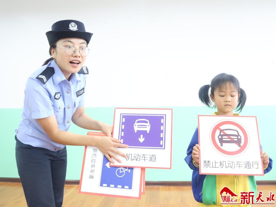新天水訊【記者余碧波】叮鈴鈴……交警叔叔的交通小課堂開講啦。