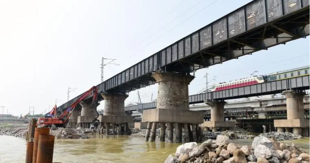 新伯陽(yáng)渭河大橋是隴海鐵路上行線(xiàn)寶天段改線(xiàn)工程7座大橋中唯一一座分別上跨渭河公路橋與原鐵路上行線(xiàn)的橋梁,在施工過(guò)程中,施工方和鐵路工務(wù)各站段積極溝通,制定嚴(yán)密的監(jiān)測(cè)方案,定人定期定崗對(duì)有擾動(dòng)的地方及時(shí)觀測(cè),以防施工對(duì)機(jī)車(chē)正常行駛造成干擾。