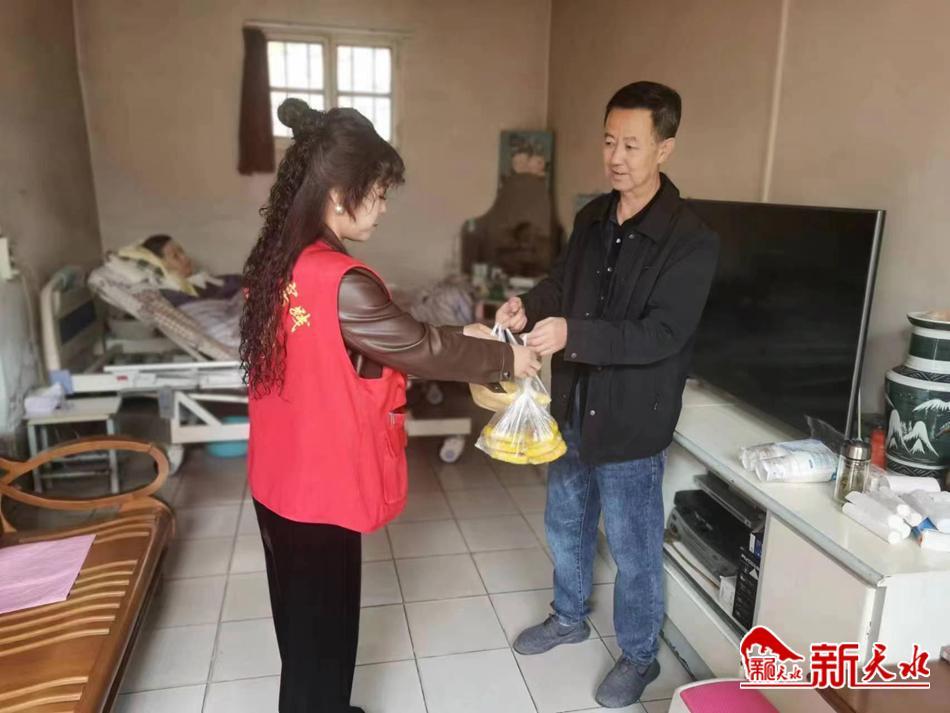 社區(qū)工作人員為困難殘疾人家庭送上米面、水果等慰問品,與他們親切交談,詳細(xì)詢問家庭生活近況和困難情況,鼓勵(lì)他們樹立信心,積極面對目前存在的困難。