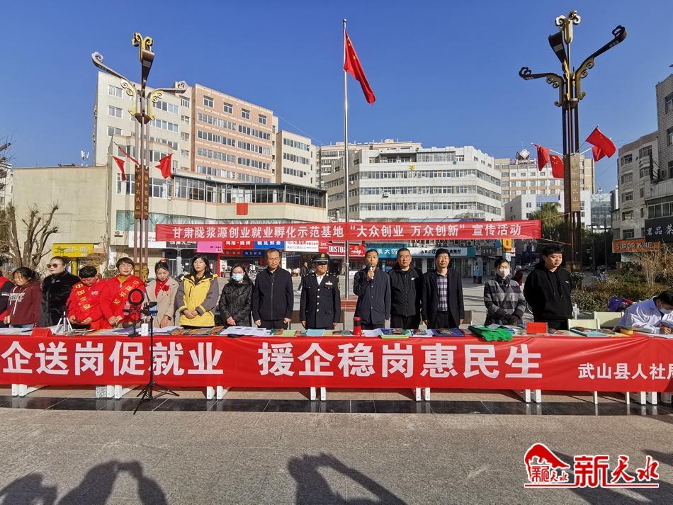 新天水訊【通訊員董世雄 王越】11月24日,武山縣人社局聯合甘肅隴漿源創(chuàng)業(yè)就業(yè)孵化基地和縣內各相關部門、企業(yè)開展“攜企送崗促就業(yè)·援企穩(wěn)崗惠民生”就業(yè)宣傳活動。