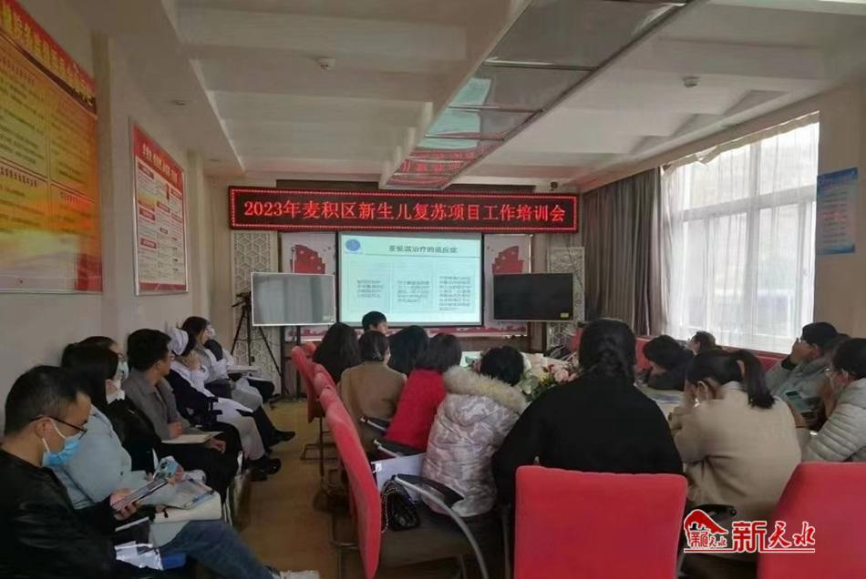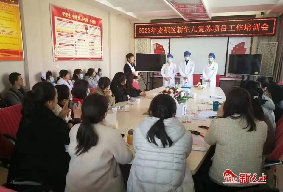 新天水訊 麥積區(qū)衛(wèi)健局組織區(qū)婦幼保健院近日舉辦《麥積區(qū)2023年新生兒復蘇項目工作培訓會》,以進一步提升各級醫(yī)療機構新生兒復蘇操作水平和相關醫(yī)護人員急救能力,有效降低新生兒窒息發(fā)生率、病死率和傷殘率,加強母嬰安全保障工作。