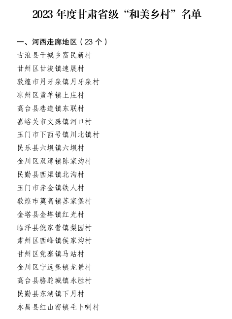 附件 2023年度甘肅省級“和美鄉(xiāng)村”名單