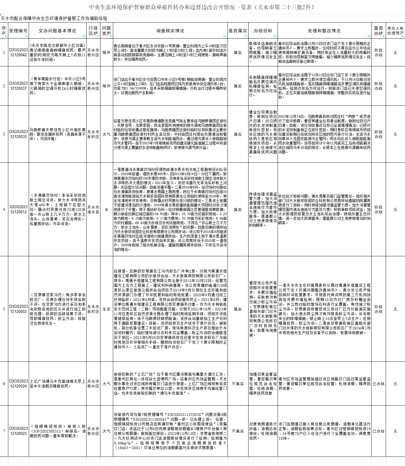 中央第四生態(tài)環(huán)境保護(hù)督察組交辦天水市第二十三批群眾舉報(bào)件邊督邊改情況