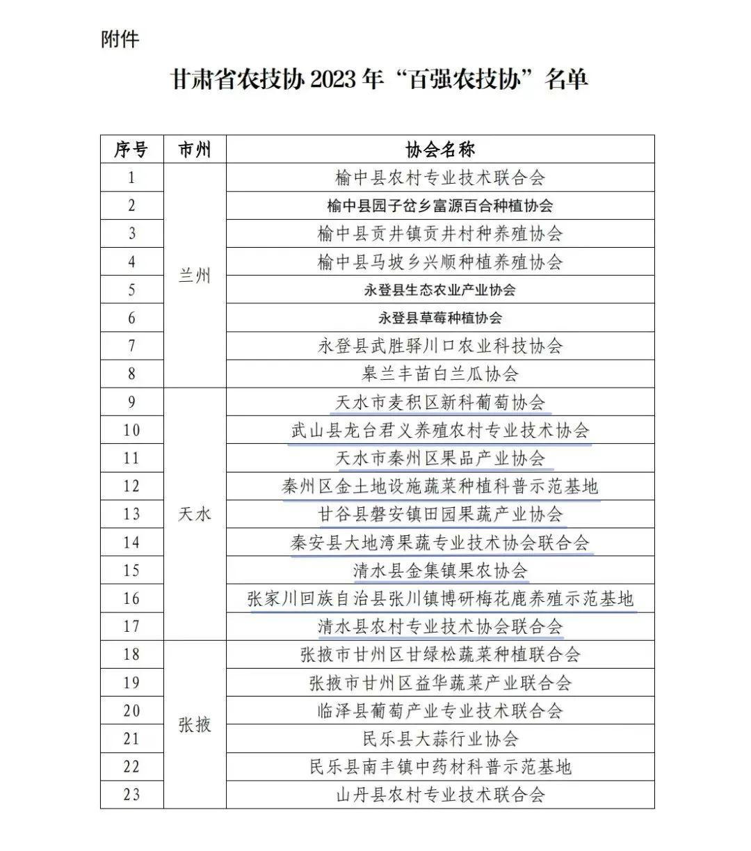 關(guān)于公布2023年甘肅省“百強(qiáng)農(nóng)技協(xié)”選樹結(jié)果的通知