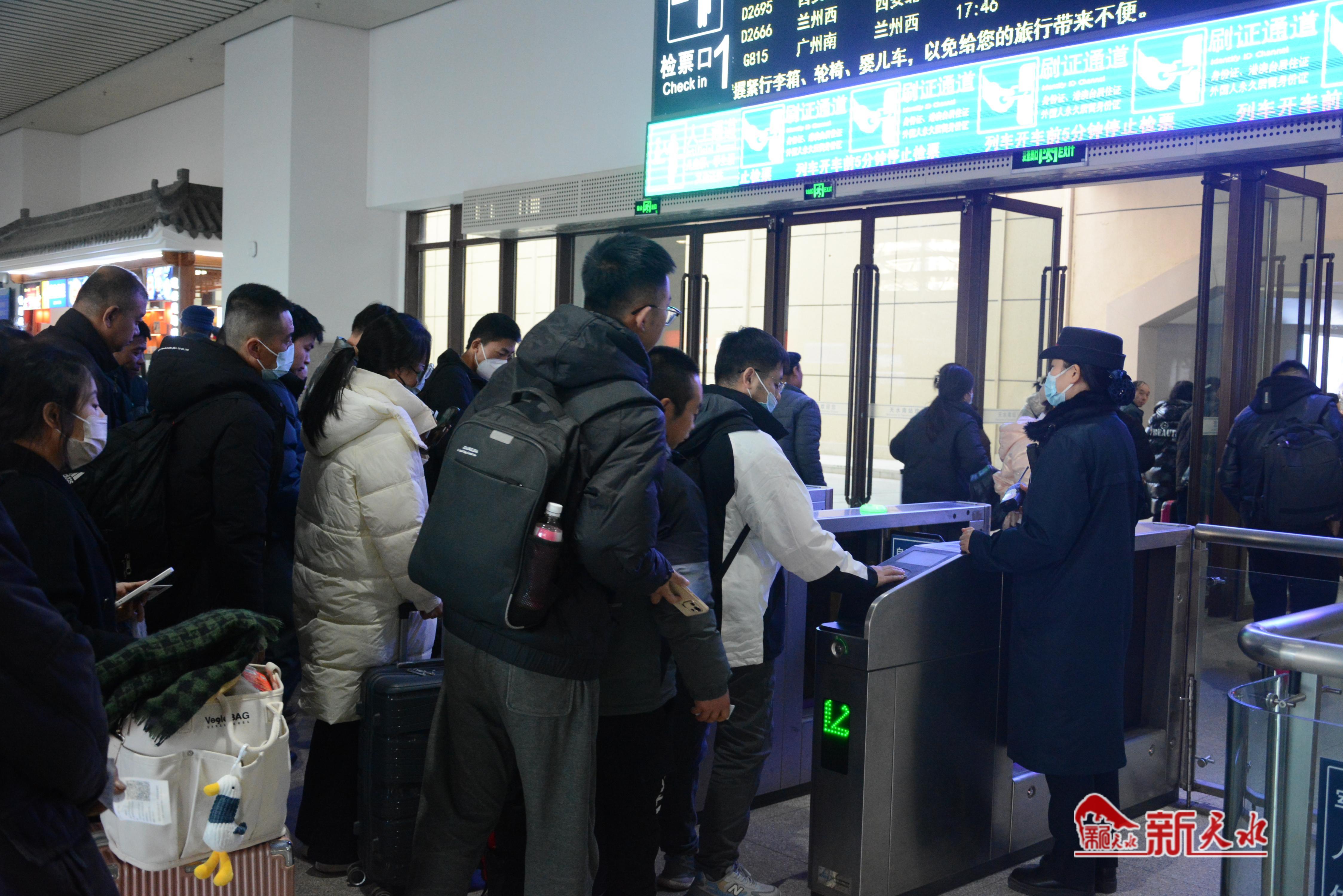 元旦假期,學(xué)生流、探親流、旅游流等客流疊加交織,天水車站科學(xué)優(yōu)化客流組織流線,強化節(jié)日期間旅客運輸組織,及時增設(shè)急客愛心通道,加大安檢查危力度,確保人人受檢、行李件件過機,堅決將危險品堵在站外車下,保證旅客安全出行。