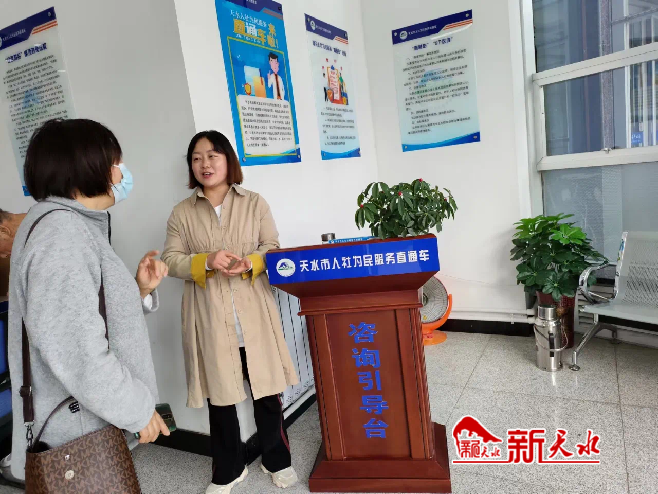 天水市人社為民服務(wù)“直通車”位于社保大廳一樓門口,很多群眾在辦理業(yè)務(wù)前,都會(huì)先來“直通車”咨詢相關(guān)政策和辦理流程??梢哉f,這里是群眾辦理人社業(yè)務(wù)的第一站,屬于窗口中的“窗口”。