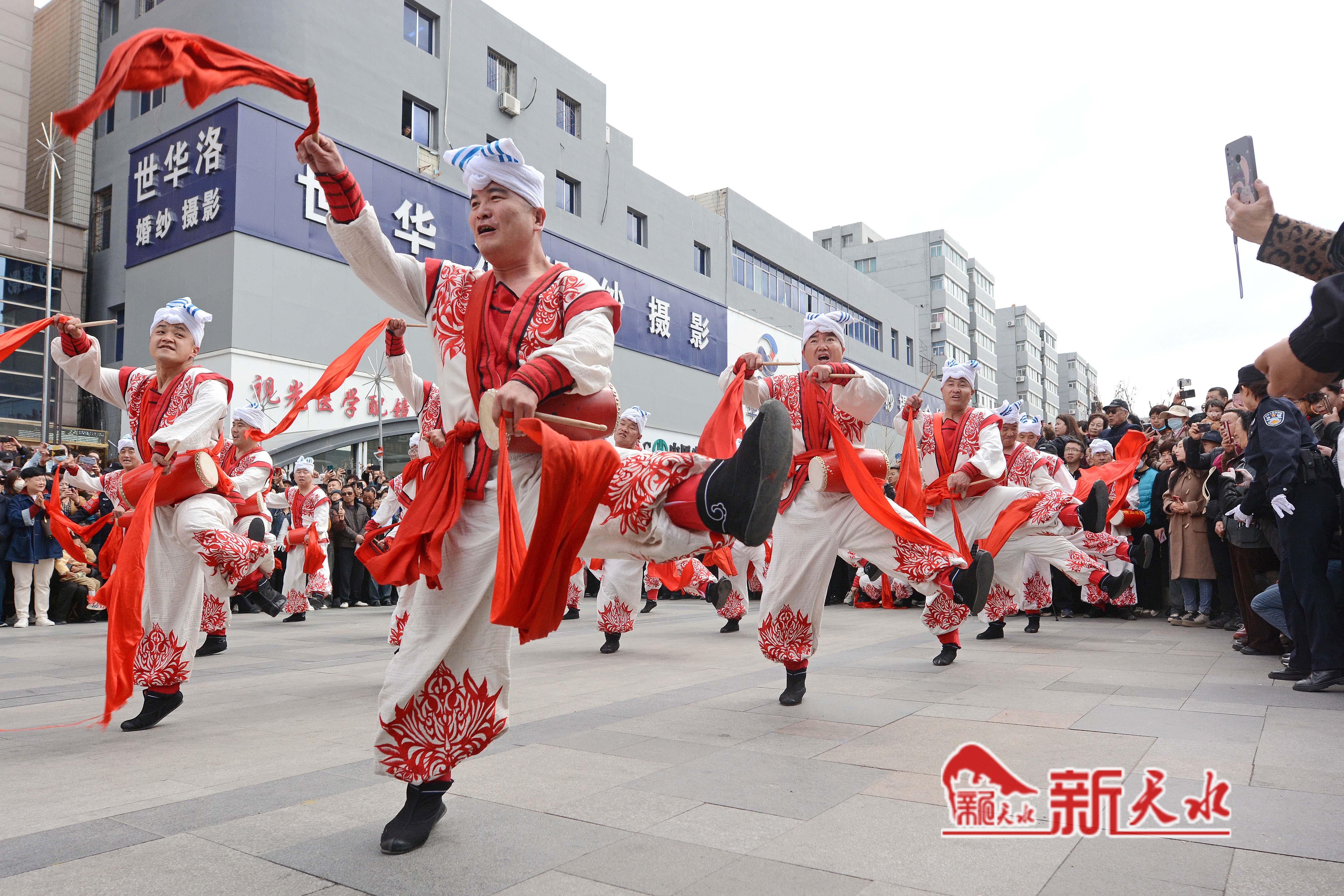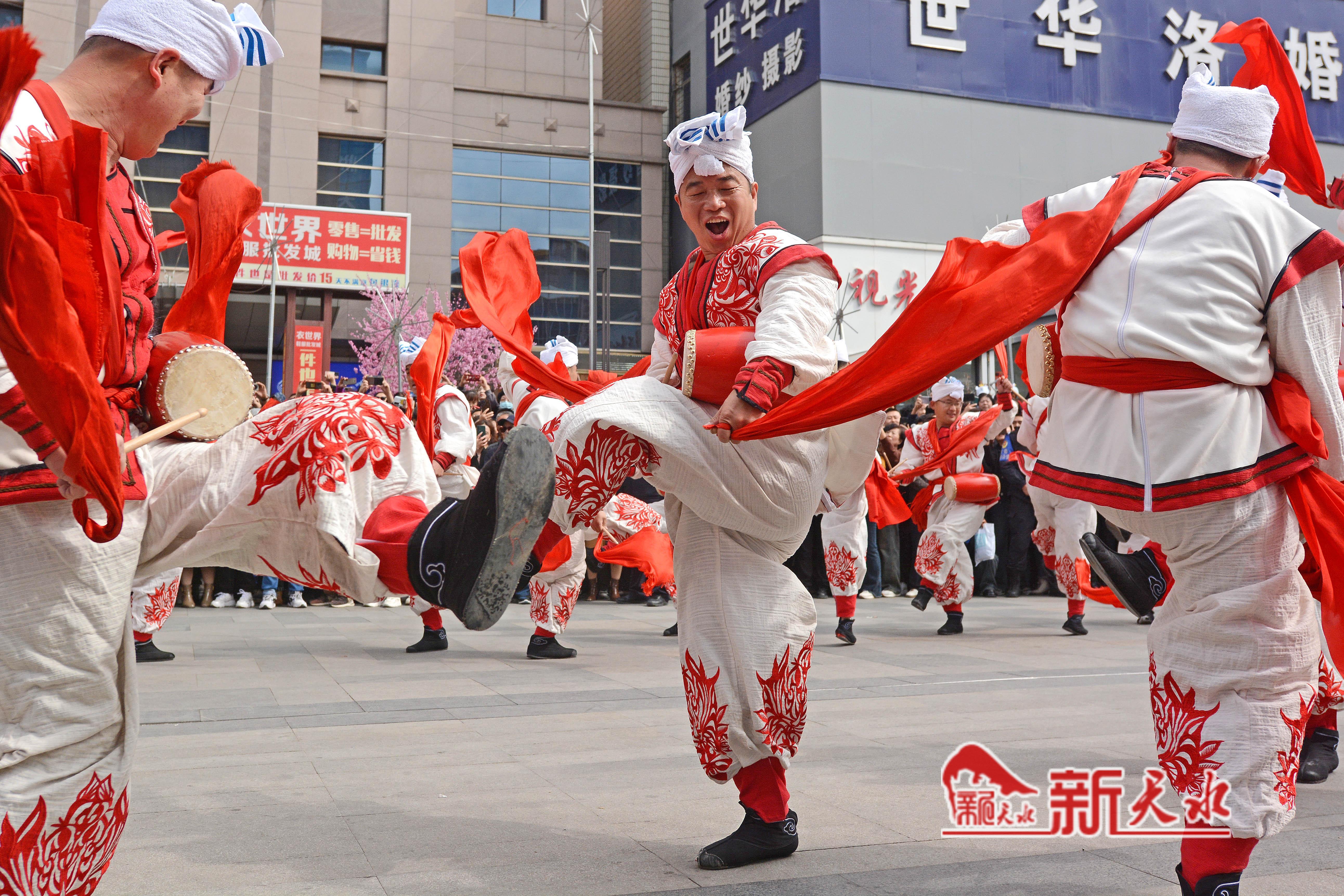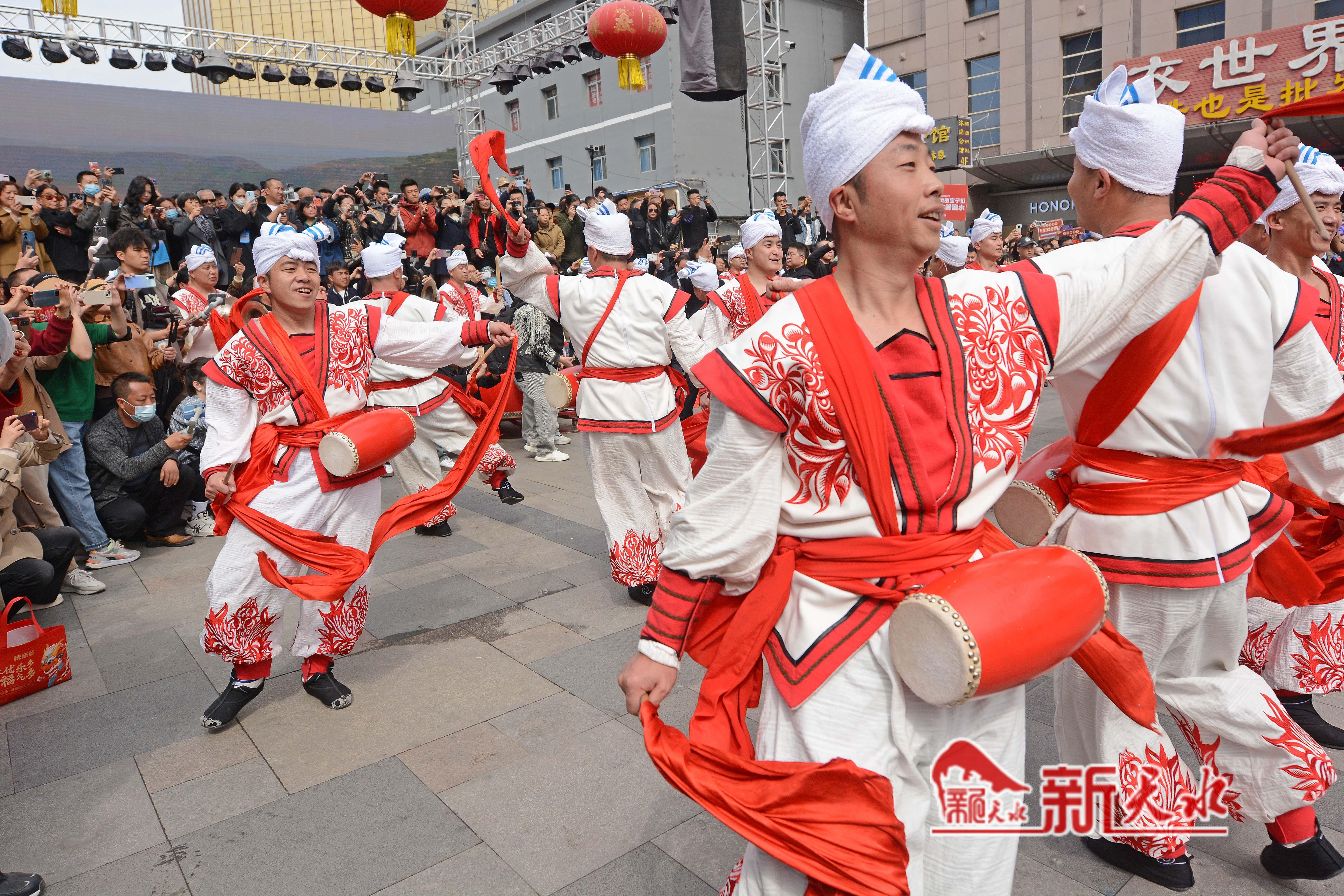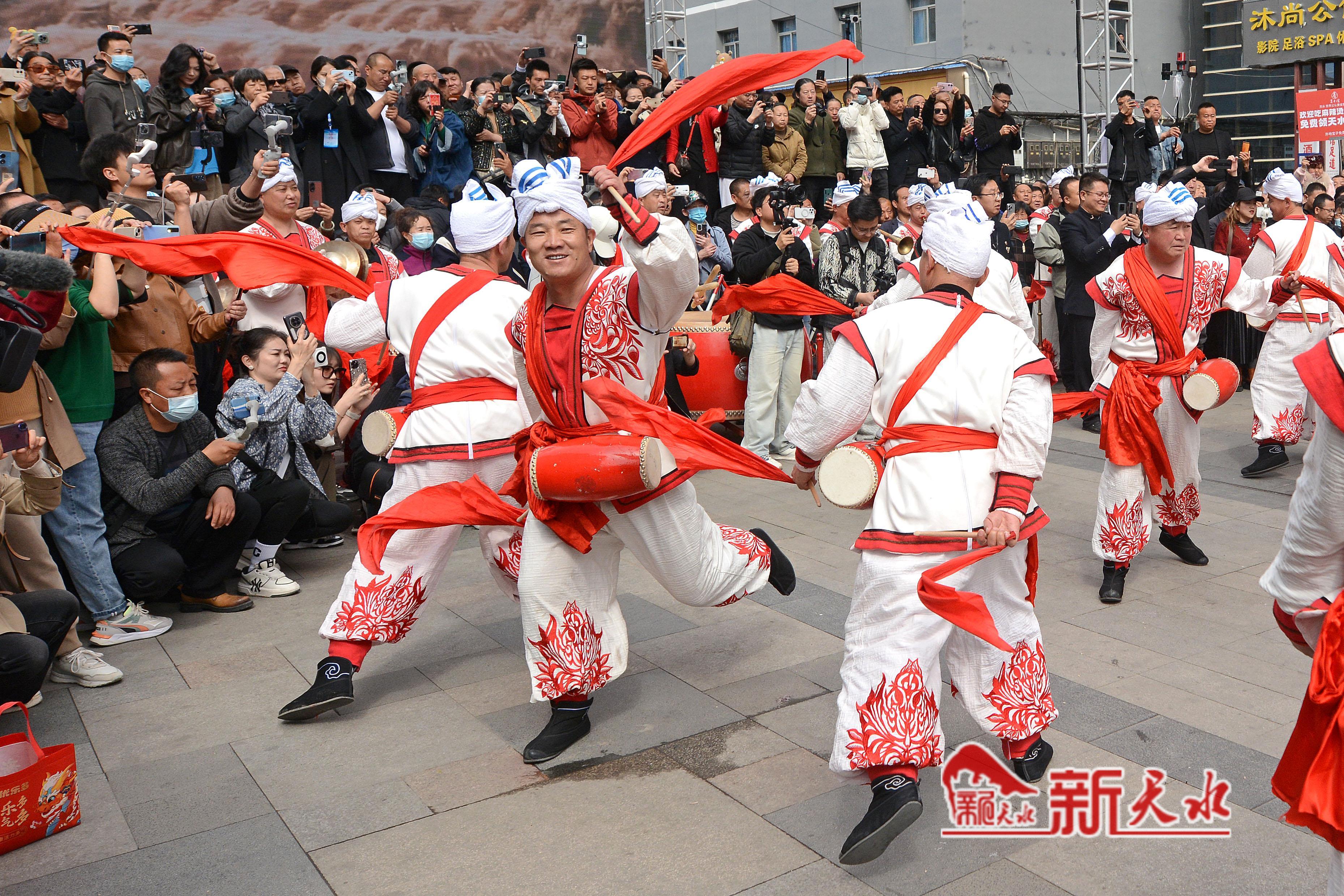陜甘一家親 榆林橫山老腰鼓為天水麻辣燙鼓勁加油