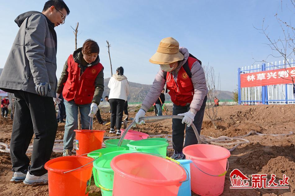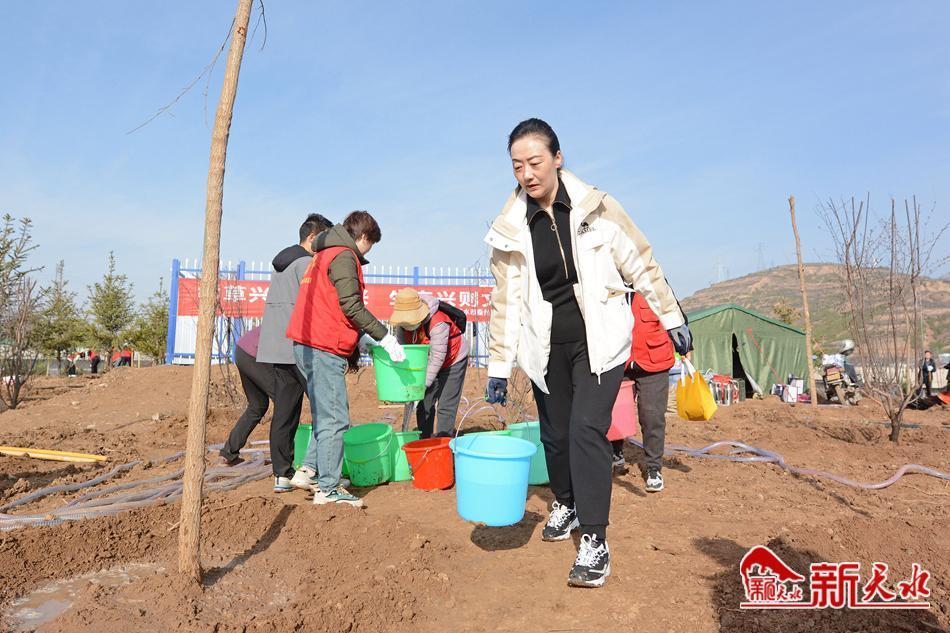 3月28日,天水市2024年春季義務(wù)植樹活動在秦州區(qū)太京鎮(zhèn)靳家崖村連霍高速天平高速交會處、玉泉鎮(zhèn)曹家崖村水家大坡展開。 當(dāng)天一早,市區(qū)兩級廣大干部職工身著紅馬甲,天水軍分區(qū)的官兵一起,肩扛鐵鍬、手提水桶來到植樹點,大家搬運樹苗、扶樹填土、壓土澆水,現(xiàn)場一片熱火朝天的植樹景象。