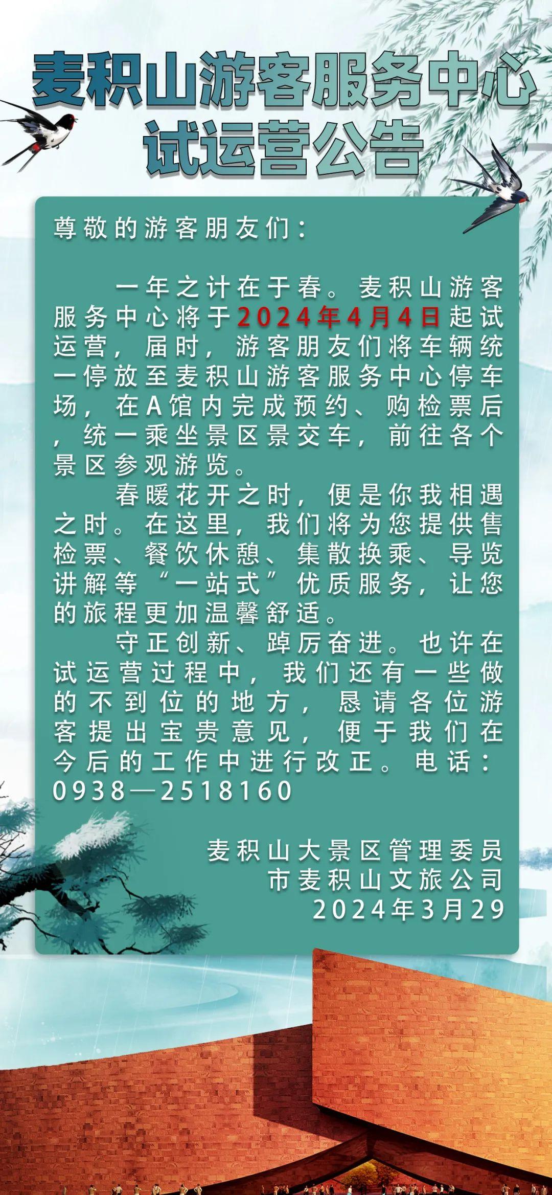 麥積山游客服務(wù)中心試運(yùn)營(yíng)公告