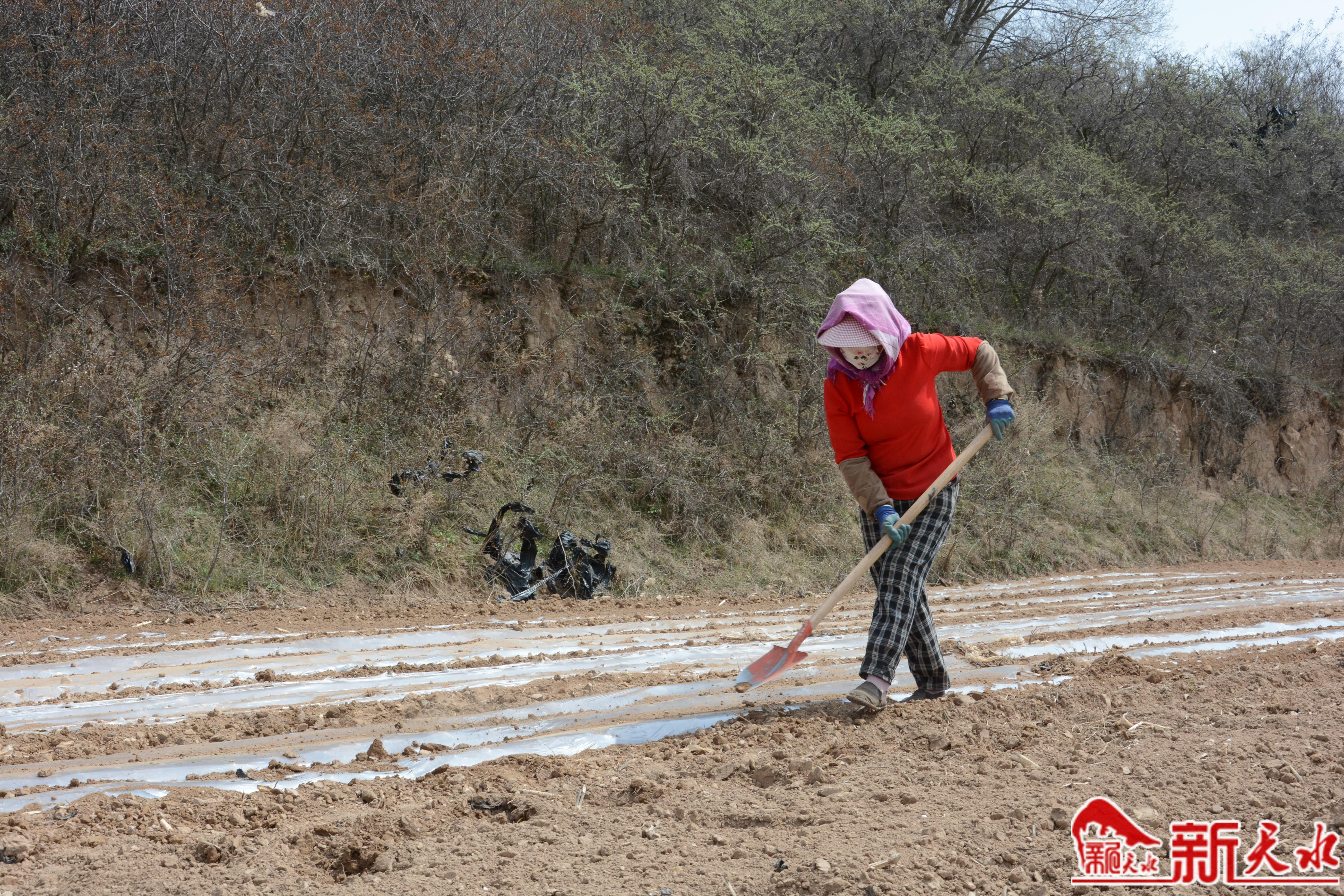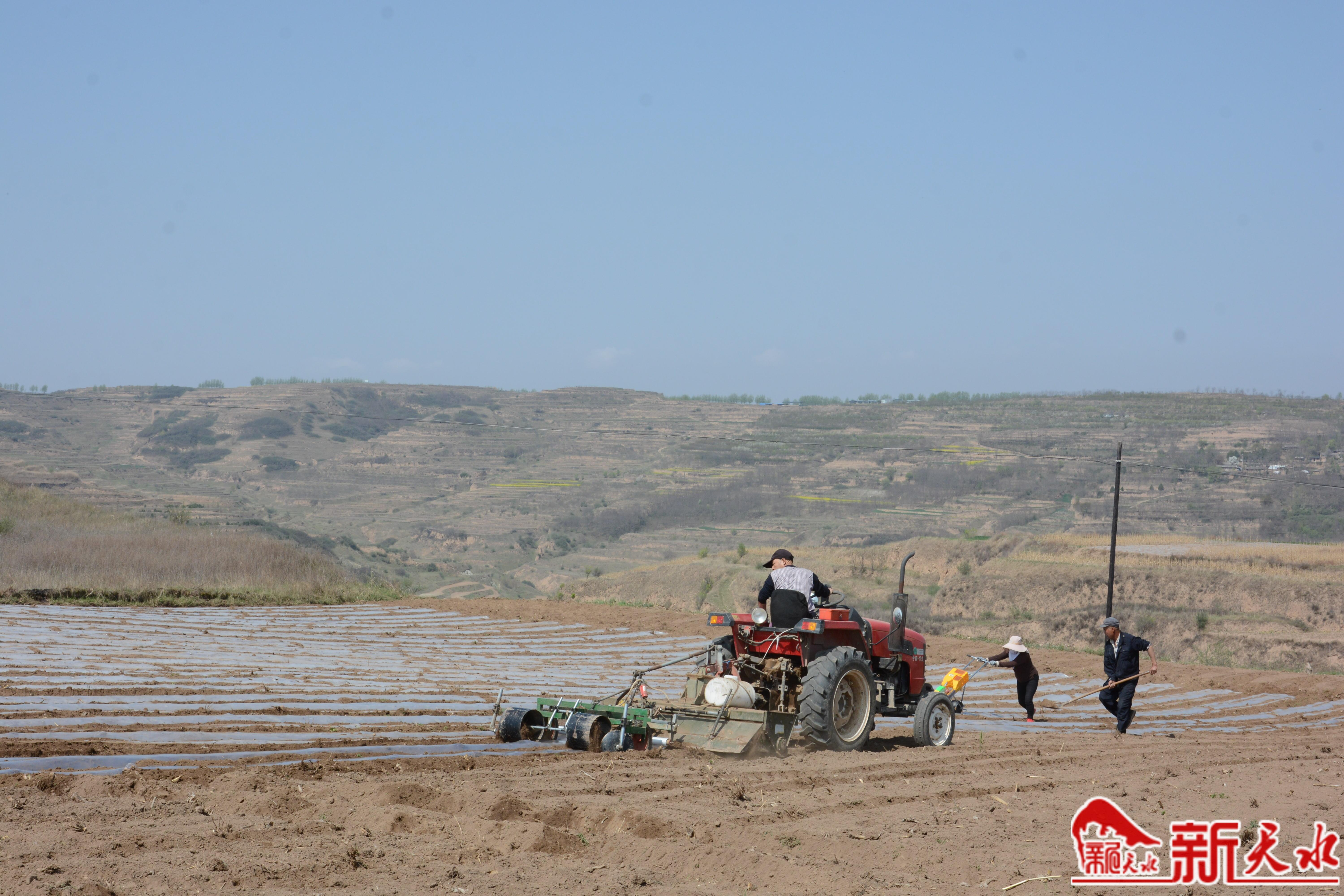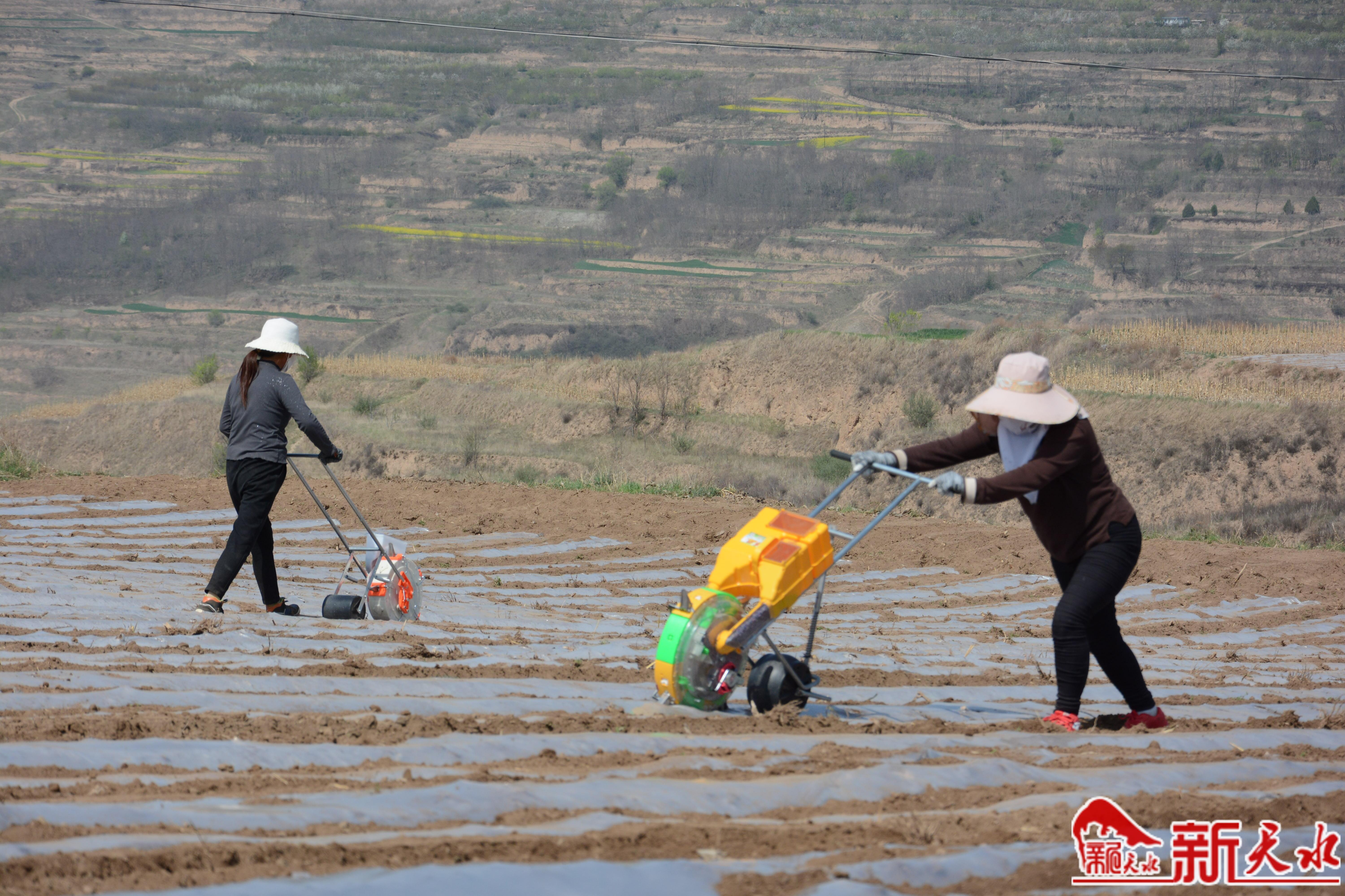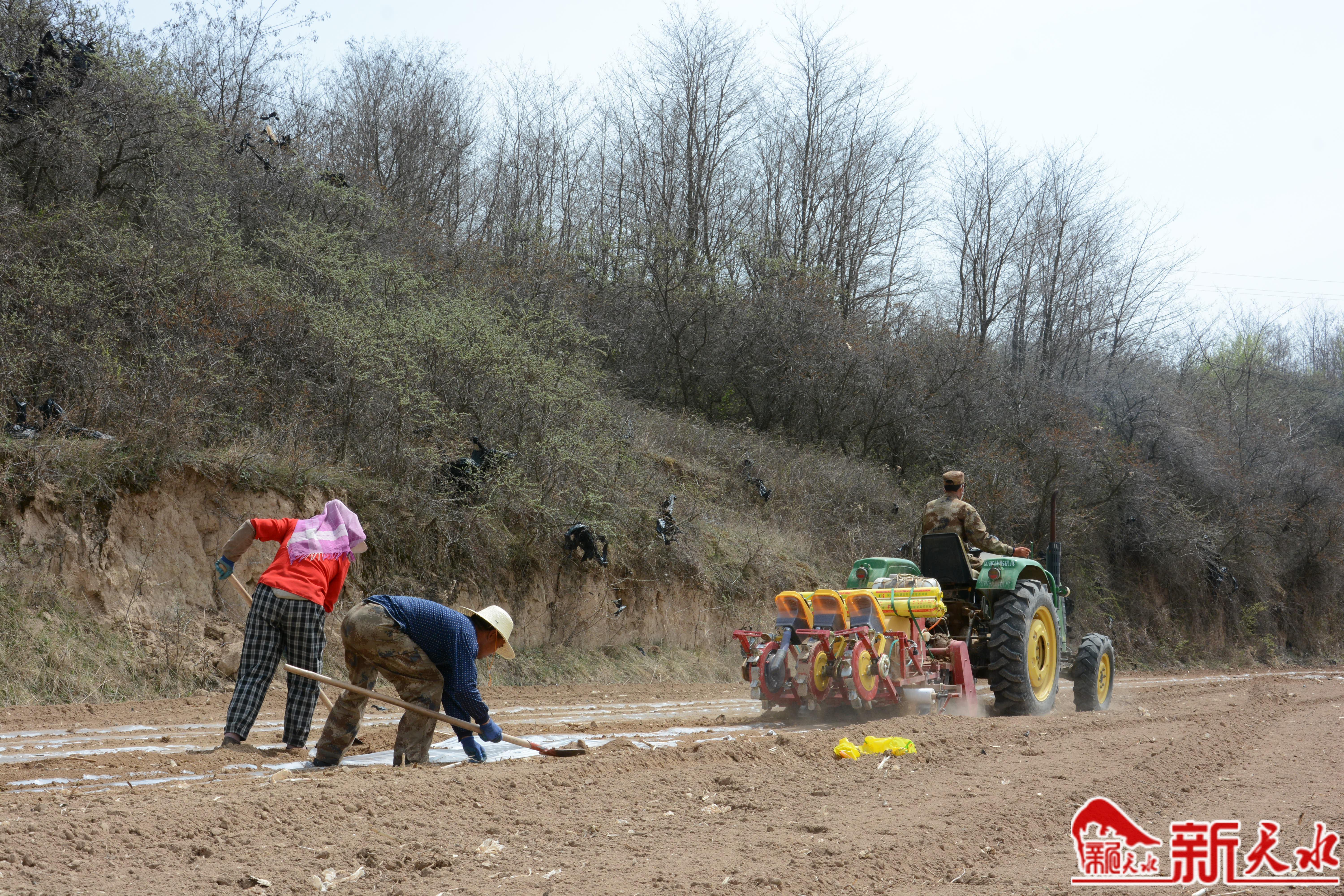 最近一段時(shí)間,在秦安縣王鋪鎮(zhèn)馬山灣流域,隨著山勢(shì)修筑的層層梯田里,也是一番覆膜點(diǎn)種的忙碌景象。
