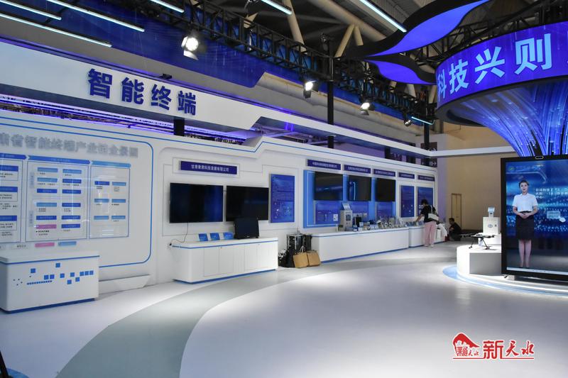 7月5日,記者在位于甘肅國際會展中心二樓的電子科技館看到,展館整體以藍白色調(diào)為主,開放式的空間布局,中心擺放LED主屏,全省電子科技宣傳、集成電路、軟件和信息技術(shù)服務(wù)、智能終端四個展區(qū)有序呈現(xiàn),動靜結(jié)合、智能互動,讓414平方米的展館整體充滿科技與現(xiàn)代氣息,全方位展現(xiàn)我省與我市電子信息產(chǎn)業(yè)高質(zhì)量發(fā)展成果。