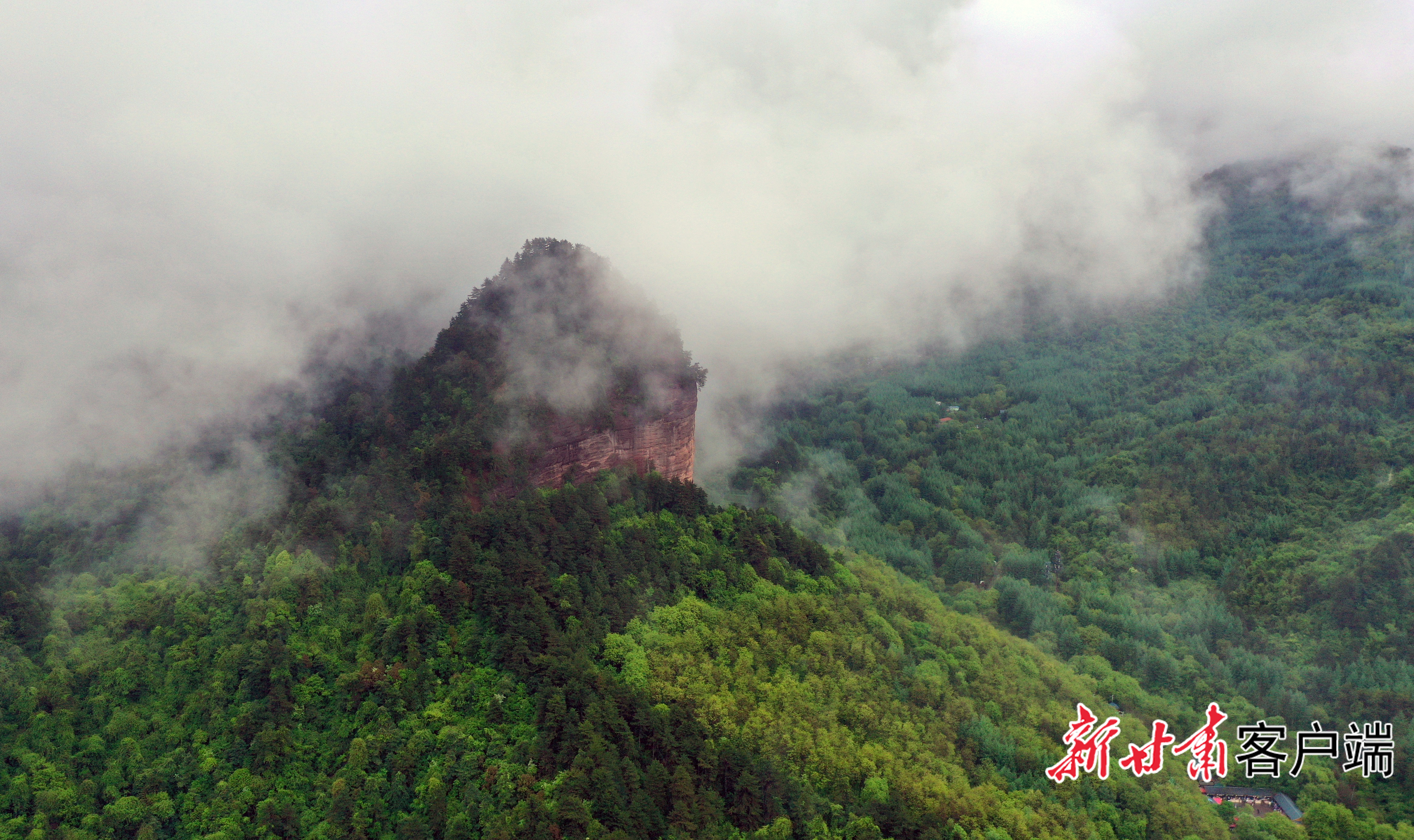 麥積奇峰時隱時現(xiàn),呈現(xiàn)出“麥積煙雨”景觀。