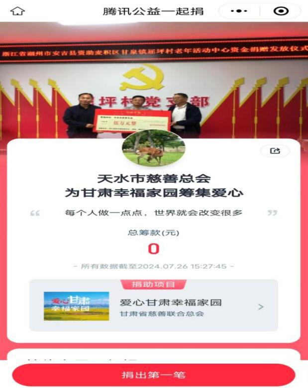 第二步:點(diǎn)擊界面正下方“捐出第一筆”選項(xiàng),進(jìn)入捐款創(chuàng)建流程