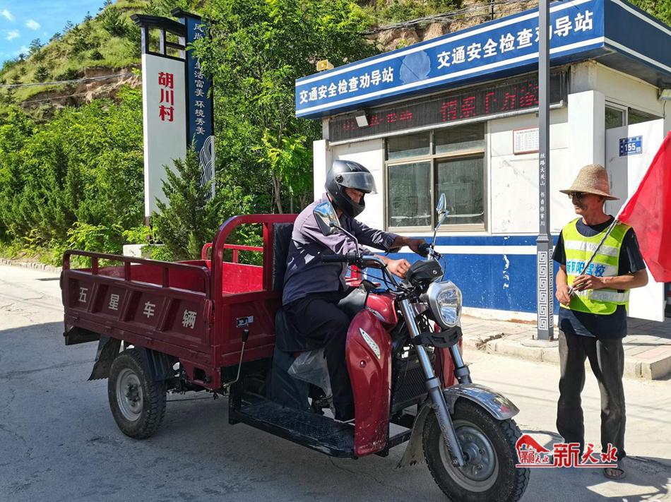 “頭盔戴上再走呀老馬,這安全駕駛可馬虎不得?!苯煌▌駥?dǎo)員李斌一邊揮著手里的小紅旗,一邊走上前去給村民戴上頭盔。張家川縣胡川鎮(zhèn)胡川村口的交通安全檢查勸導(dǎo)站是胡川村與寧馬村、陽山村三村共同進(jìn)行值班值守的站口,重點(diǎn)對(duì)過往三輪車和電動(dòng)車的違法載人、不戴頭盔現(xiàn)象進(jìn)行常態(tài)化勸導(dǎo)?!霸诖蠹业墓餐ο?,這項(xiàng)工作還是很有成效的,村民的安全意識(shí)有了明顯提升。我們作為勸導(dǎo)員在這里值班,為大家平安出行貢獻(xiàn)一點(diǎn)力量,感到也是很光榮的?!崩畋笳f道。堅(jiān)持人民至上、生命至上,把保護(hù)人民生命安全擺在首位,小小的勸導(dǎo)站不只是樹立文明新風(fēng)站,更是人民幸福生活的保障站。