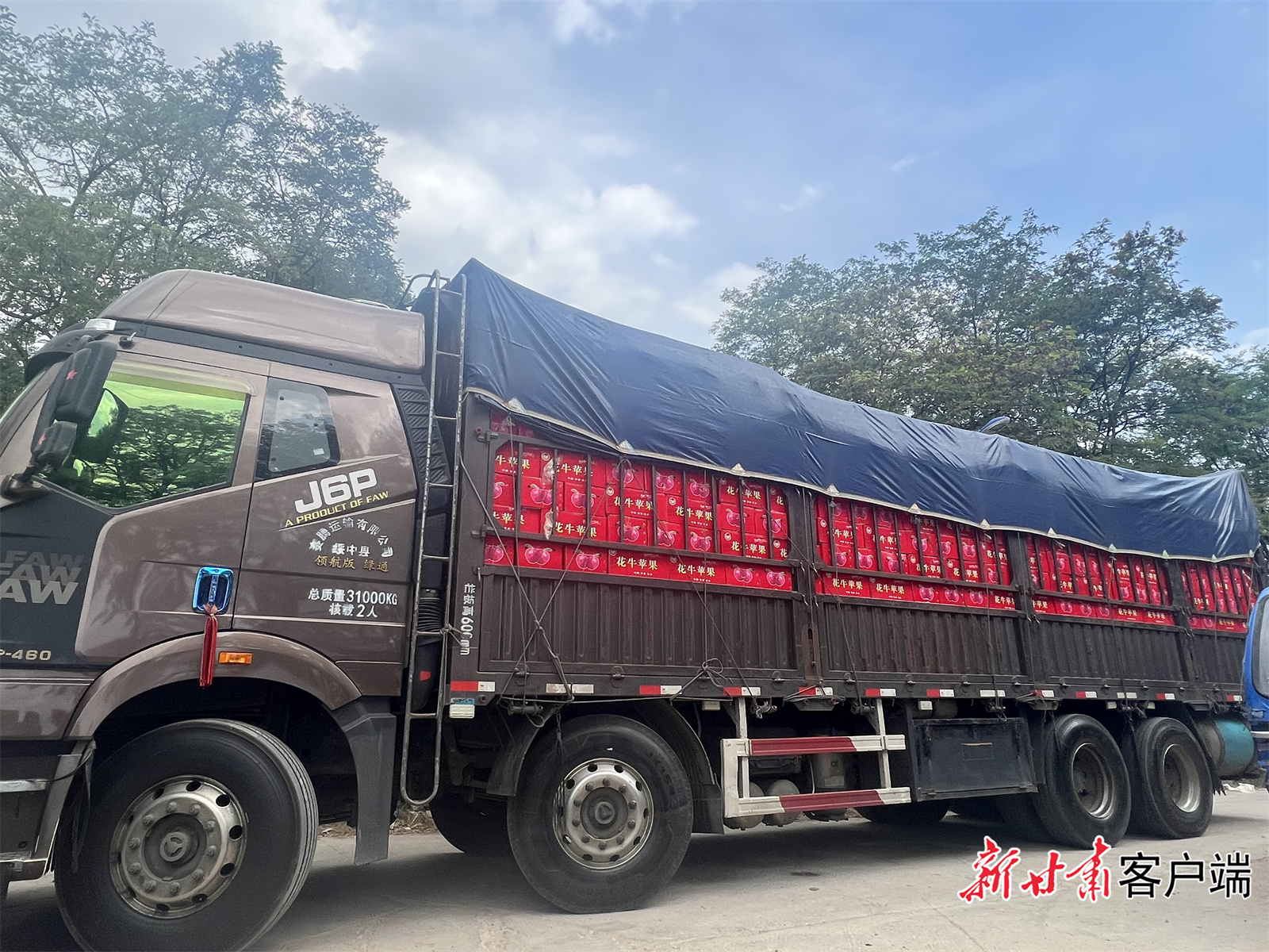 一輛輛滿載花牛蘋果的卡車駛向外地市場。