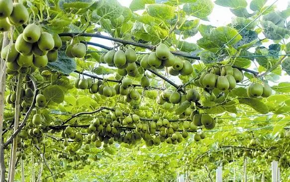 果園里,一層層獼猴桃架高低錯(cuò)落地分布在田間地頭、整齊有序,一根根藤蔓上掛滿了圓潤飽滿、細(xì)膩多汁的獼猴桃,微風(fēng)拂過,濃濃果香撲鼻而來??靵砗臀覀儾烧锾斓牡谝豢谔稹矮J”吧!
