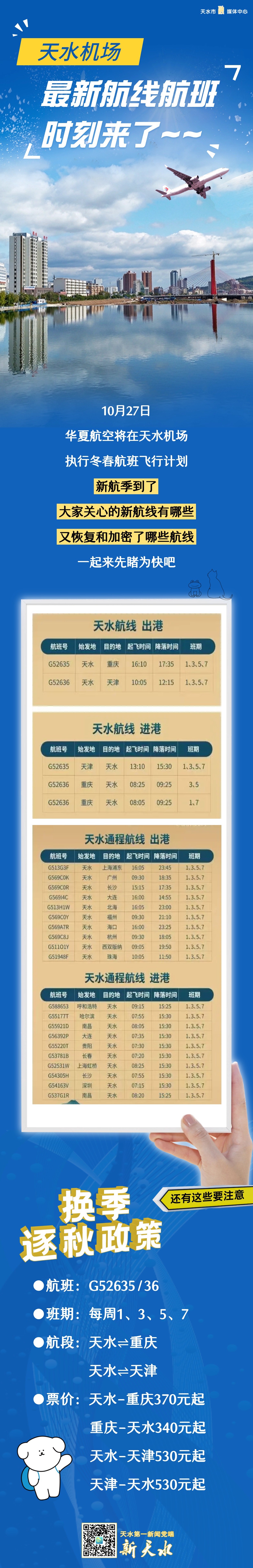 長(zhǎng)圖丨天水機(jī)場(chǎng)最新航線航班時(shí)刻來了~~