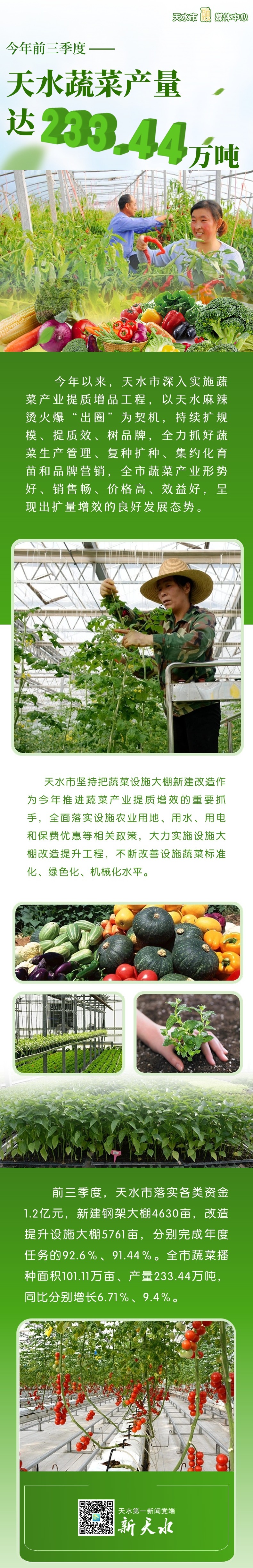 長圖丨不錯哦~前三季度,天水蔬菜產(chǎn)量達(dá)233.44萬噸