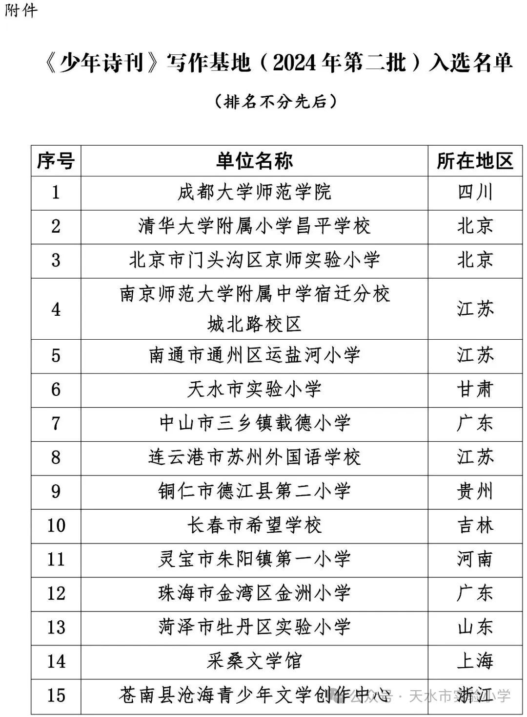 喜訊!天水市實驗小學(xué)入選《少年詩刊》寫作基地