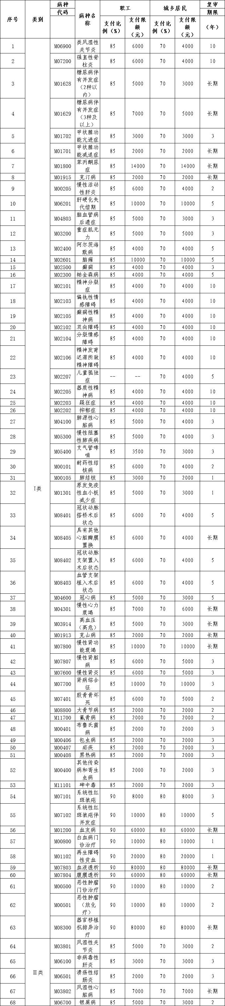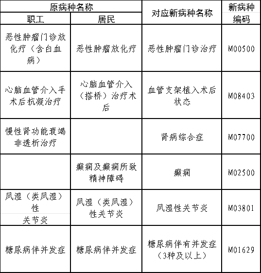 2.對(duì)已通過以下原病種認(rèn)定的參保人員,自2025年1月1日起,按照對(duì)應(yīng)的新病種享受待遇(詳見表二)。參保人員有異議的,可申請(qǐng)重新認(rèn)定。