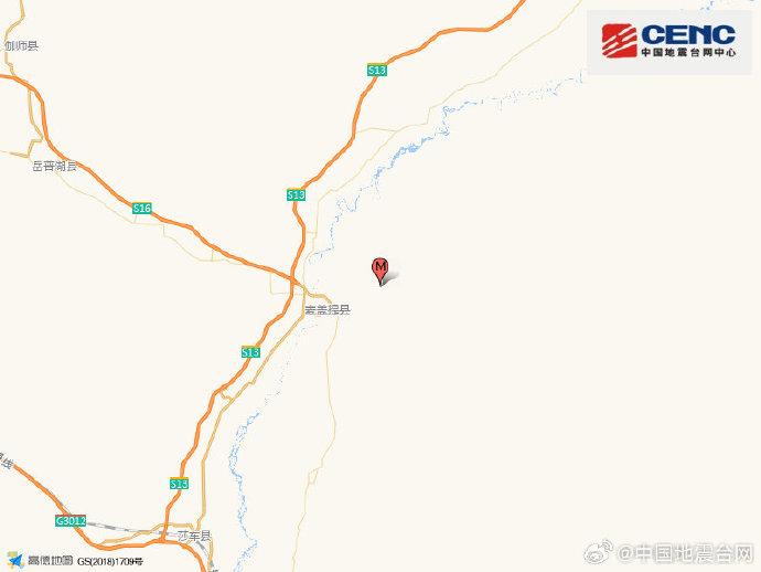 新疆喀什地區(qū)麥蓋提縣發(fā)生3.2級地震 震源深度13千米