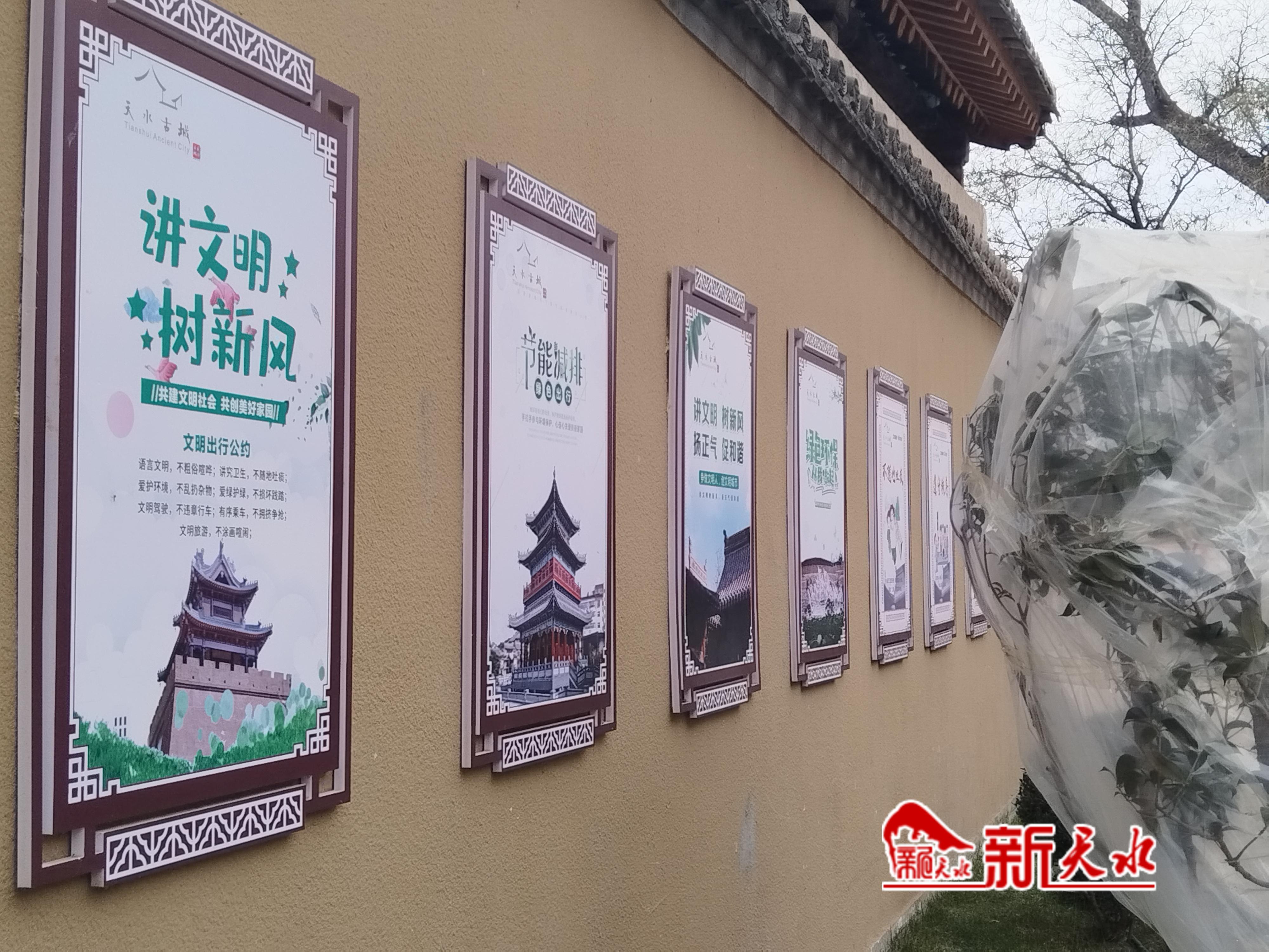 “來天水,愛上西關(guān)里,天水古城歡迎您……”“古城美景處處盡收眼底,游覽秩序大家共同營造,請愛護(hù)古城的花草樹木,切勿攀爬、踩踏、折枝,請維護(hù)景區(qū)環(huán)境衛(wèi)生,不要隨意亂扔垃圾……”漫步在天水古城的街巷里,廣播里不時(shí)傳來文明旅游的提示。“講文明、樹新風(fēng)、文明出行公約”的宣傳海報(bào)張貼在街巷的墻壁上。游人結(jié)伴而行,來往于古色古香的建筑群中,盡管游客很多,但很少有隨手亂丟垃圾的情況,游客紛紛找到垃圾箱后才將垃圾分類投放。這些細(xì)微的文明之舉,又給古城美景增添了幾分文明色彩。保潔人員穿梭于古城中,擦拭垃圾箱等環(huán)衛(wèi)設(shè)施,及時(shí)清理地面上的垃圾,給游客提供一個(gè)干凈、舒心的游玩環(huán)境。