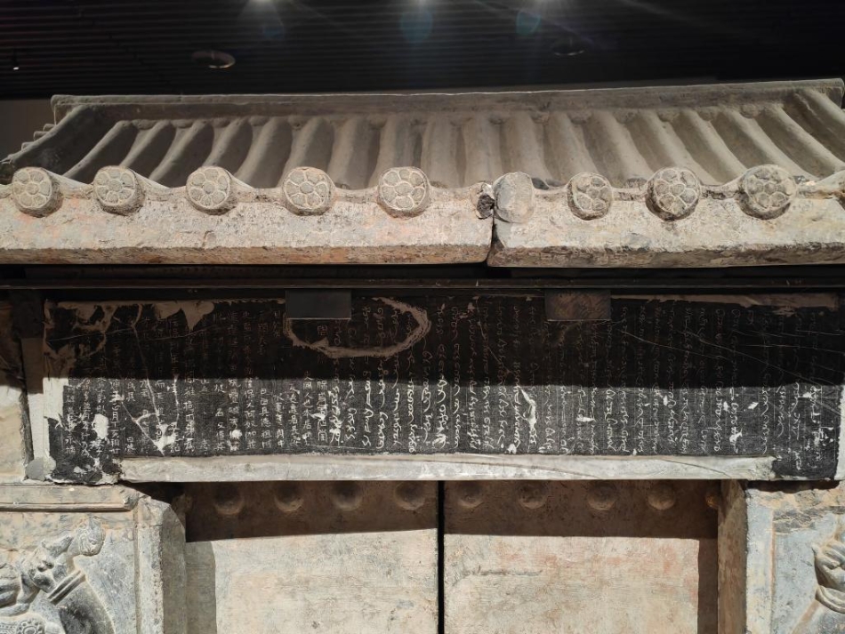 這是史君墓石槨上的粟特語和漢語銘文。新華社記者 楊一苗 攝