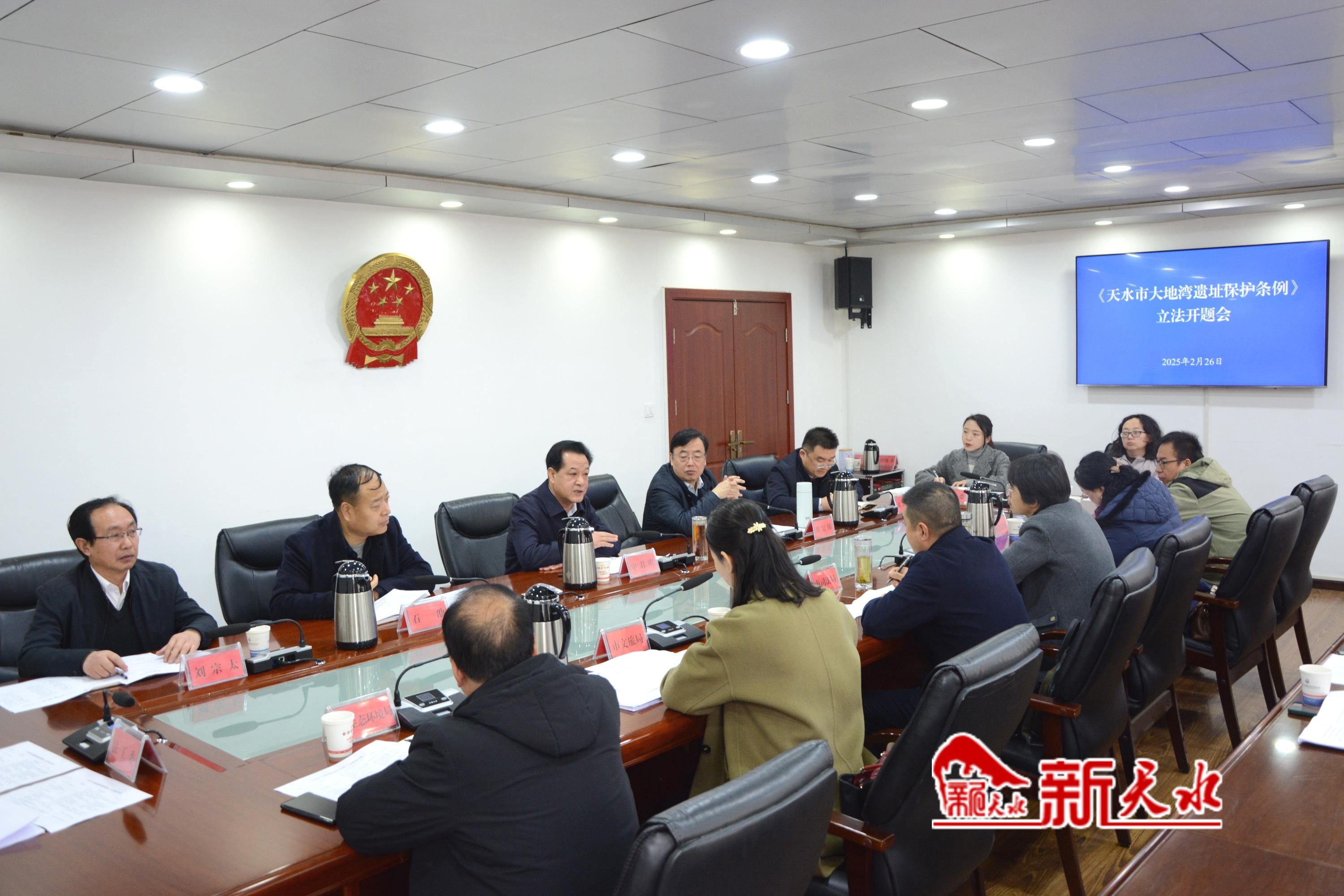 新天水訊【記者 李欣桐】2月26日,市人大常委會召開《天水市大地灣遺址保護條例》立法開題會。市人大常委會黨組副書記、副主任,市人大法制委員會主任委員申君明出席會議并講話。