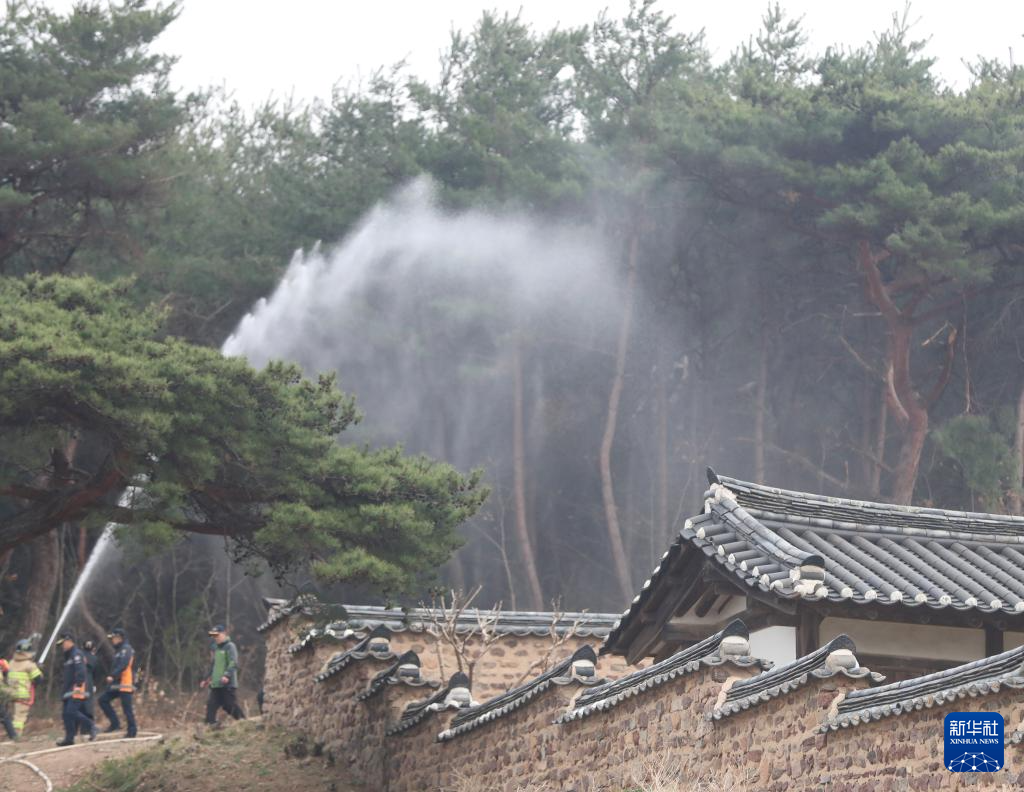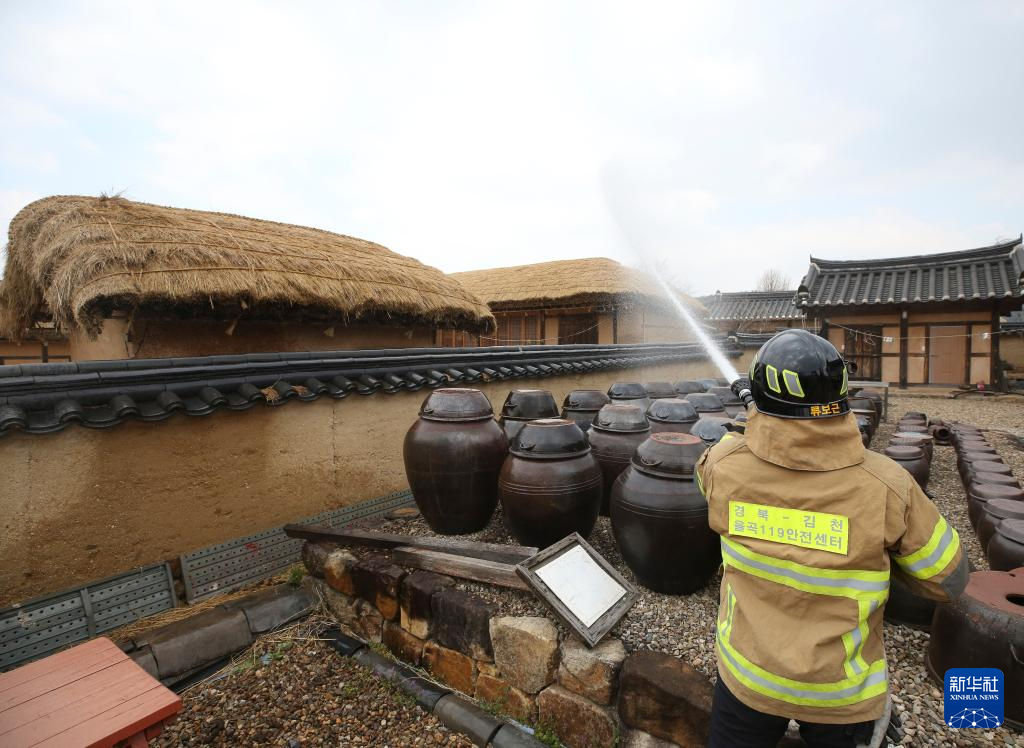 3月28日,消防人員在韓國安東市被列入世界文化遺產(chǎn)名錄的安東市河回村進(jìn)行預(yù)防火災(zāi)作業(yè)。新華社記者 姚琪琳 攝
