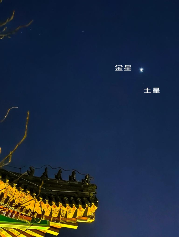 2025年1月15日在天津水上公園拍攝的金星與土星相伴。(鐘奕 攝)