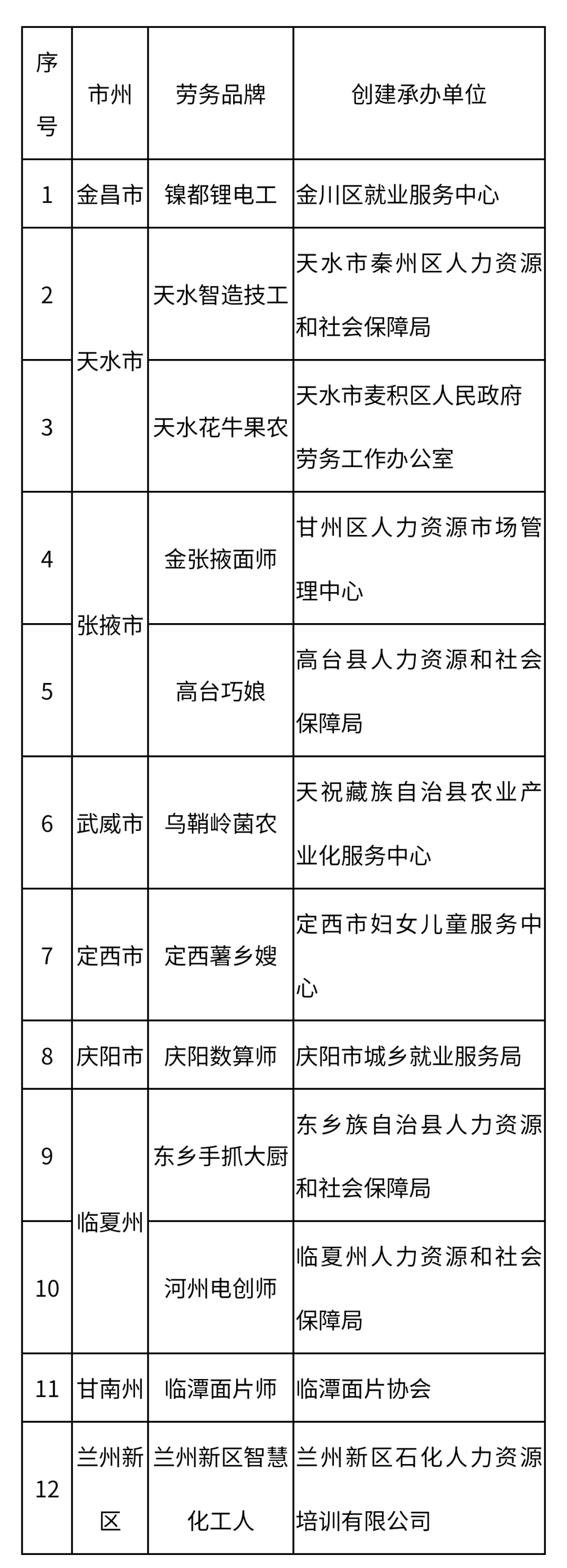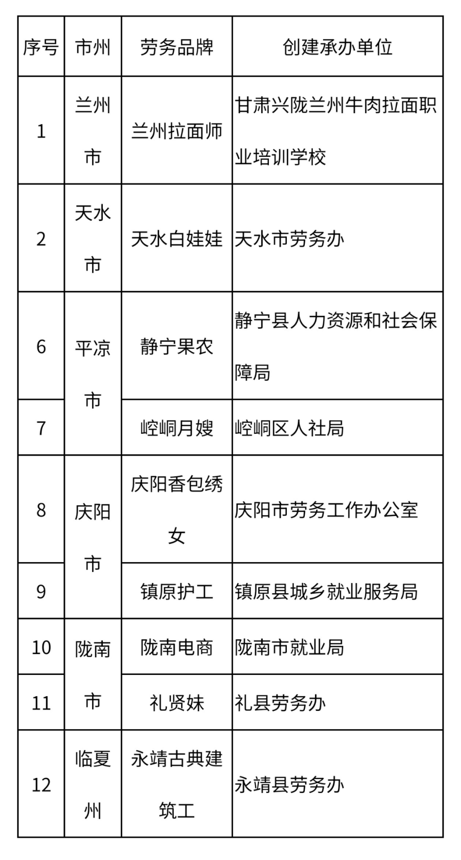 2025年優(yōu)秀省級(jí)勞務(wù)品牌擬認(rèn)定名單(12個(gè))