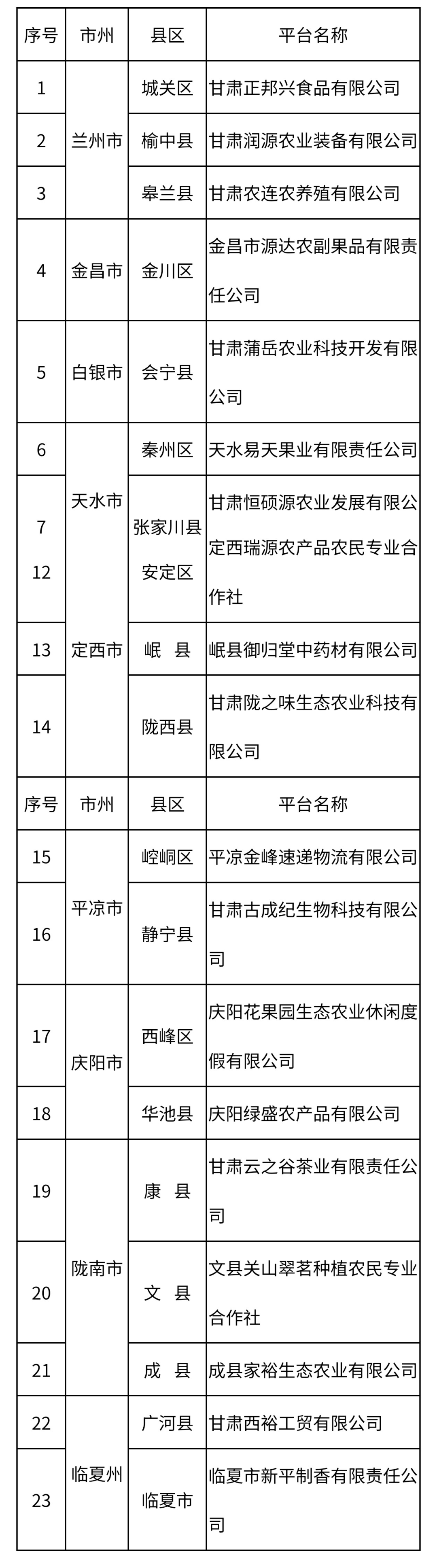 2025年甘肅省農(nóng)民工返鄉(xiāng)創(chuàng)業(yè)平臺(tái)擬認(rèn)定名單(23個(gè))