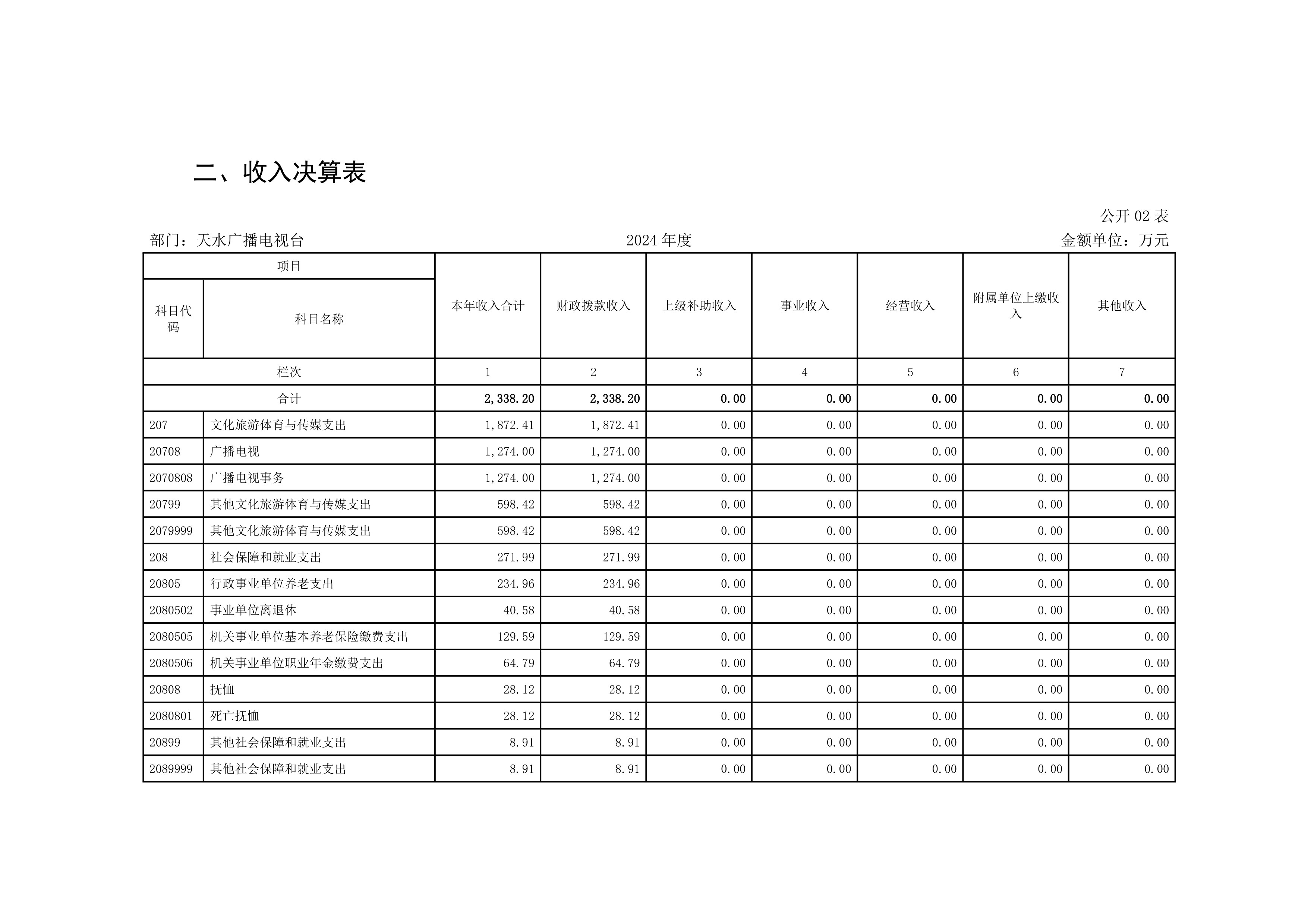 2024年度天水廣播電視臺(tái)部門(mén)決算