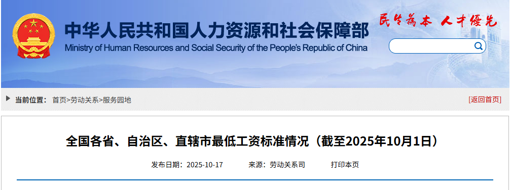 近日,人力資源和社會保障部網(wǎng)站公布全國各省、自治區(qū)、直轄市最低工資標準情況(截至2025年10月1日)。從月最低工資標準看,上海以2740元的標準居全國首位;從小時最低工資標準看,北京以27.7元的標準為全國最高。