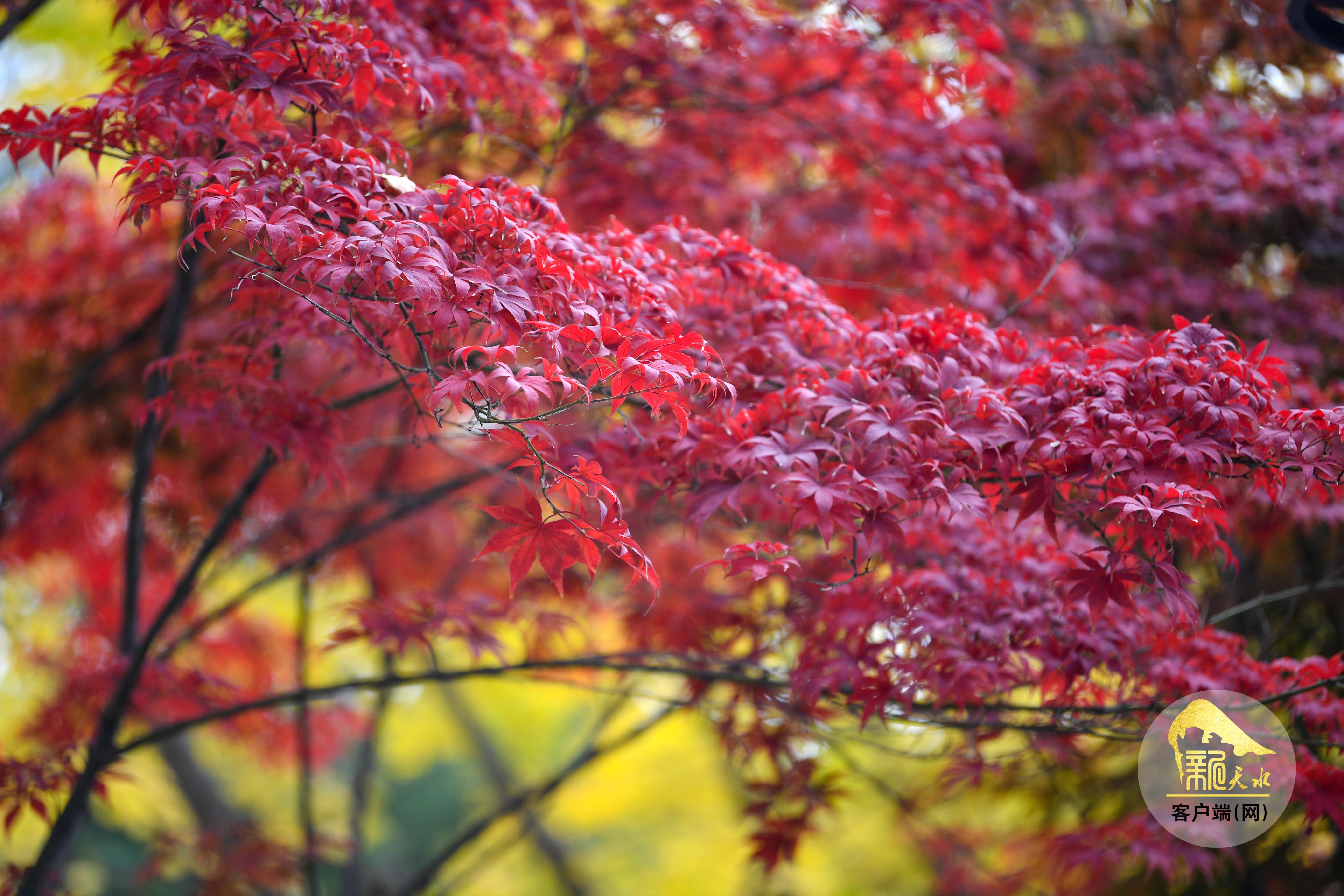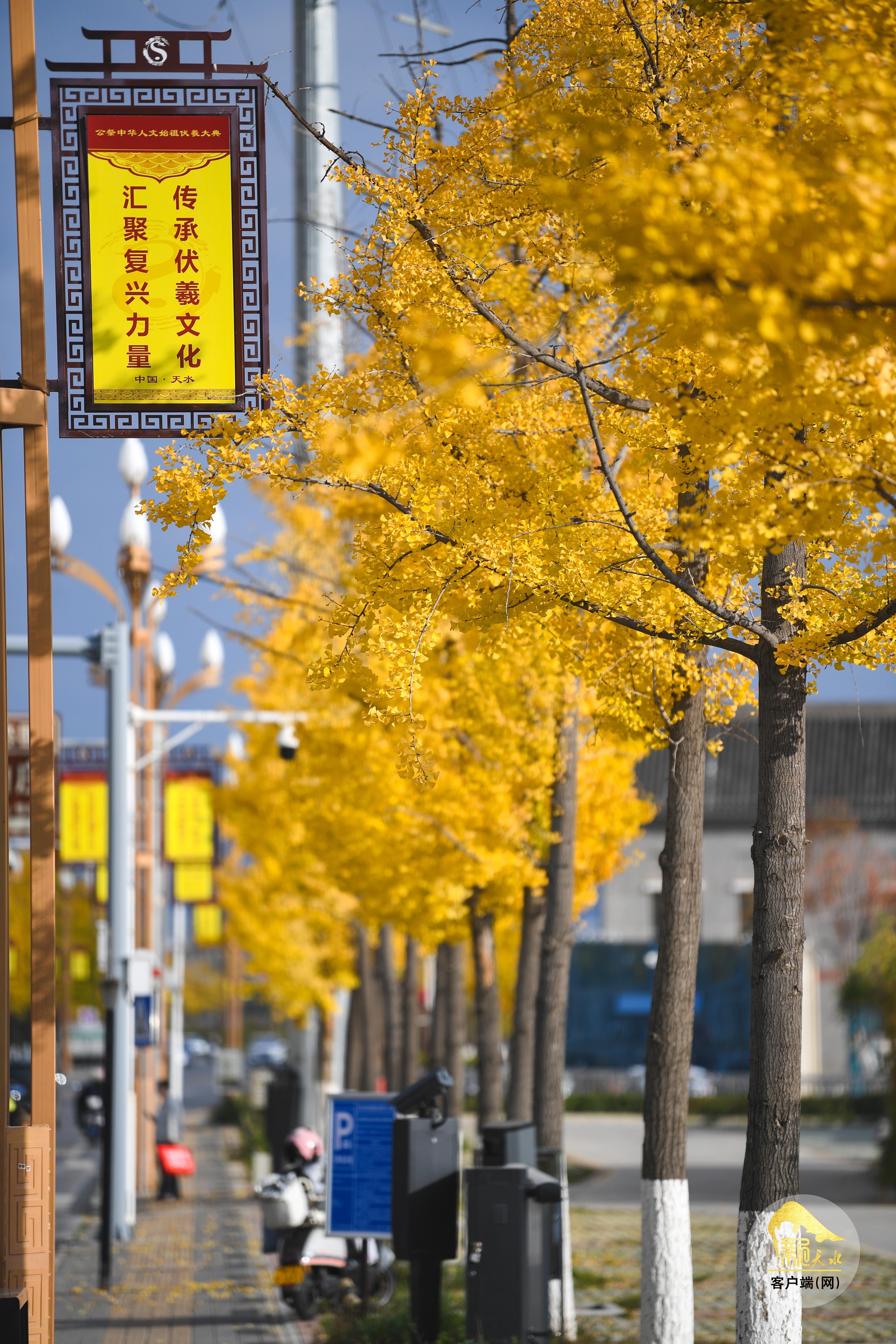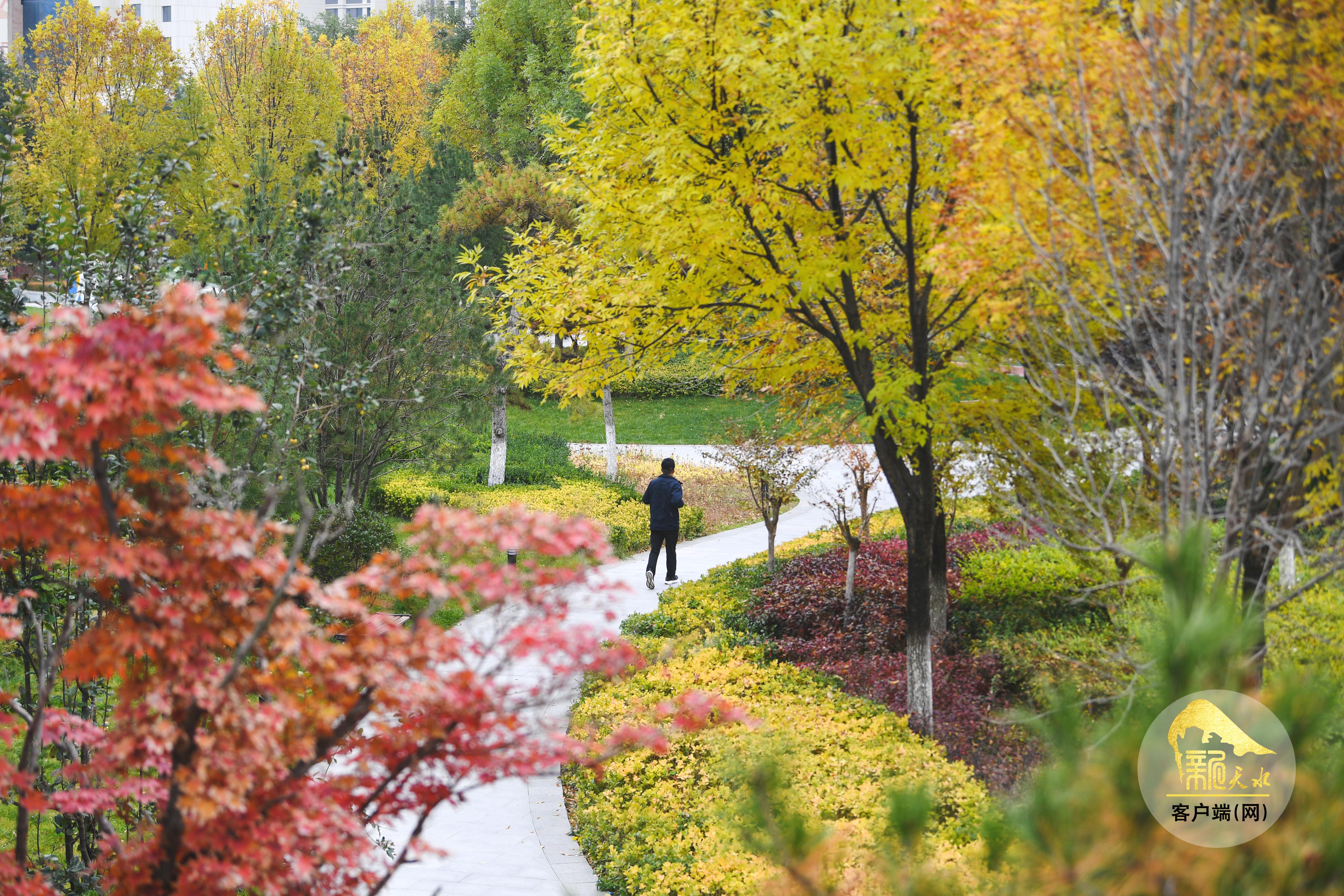 秋風蕭瑟,層林盡染。金秋的天水像是被大自然打翻的“調(diào)色盤”,金黃的銀杏、火紅的楓葉、橙黃的梧桐交織在一起,秋韻格外濃郁,色彩鋪展得恰到好處,放眼望去,如詩如畫的美景盡收眼底。