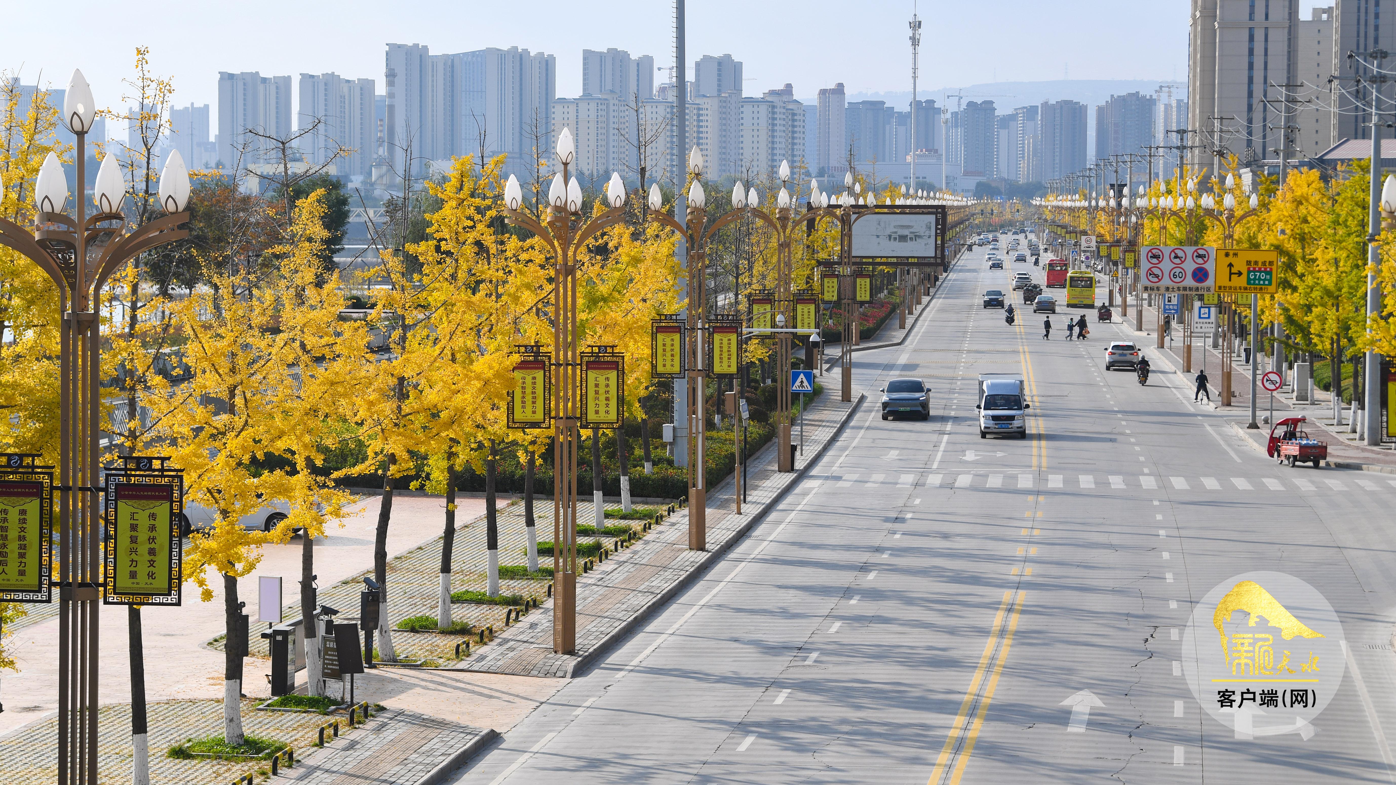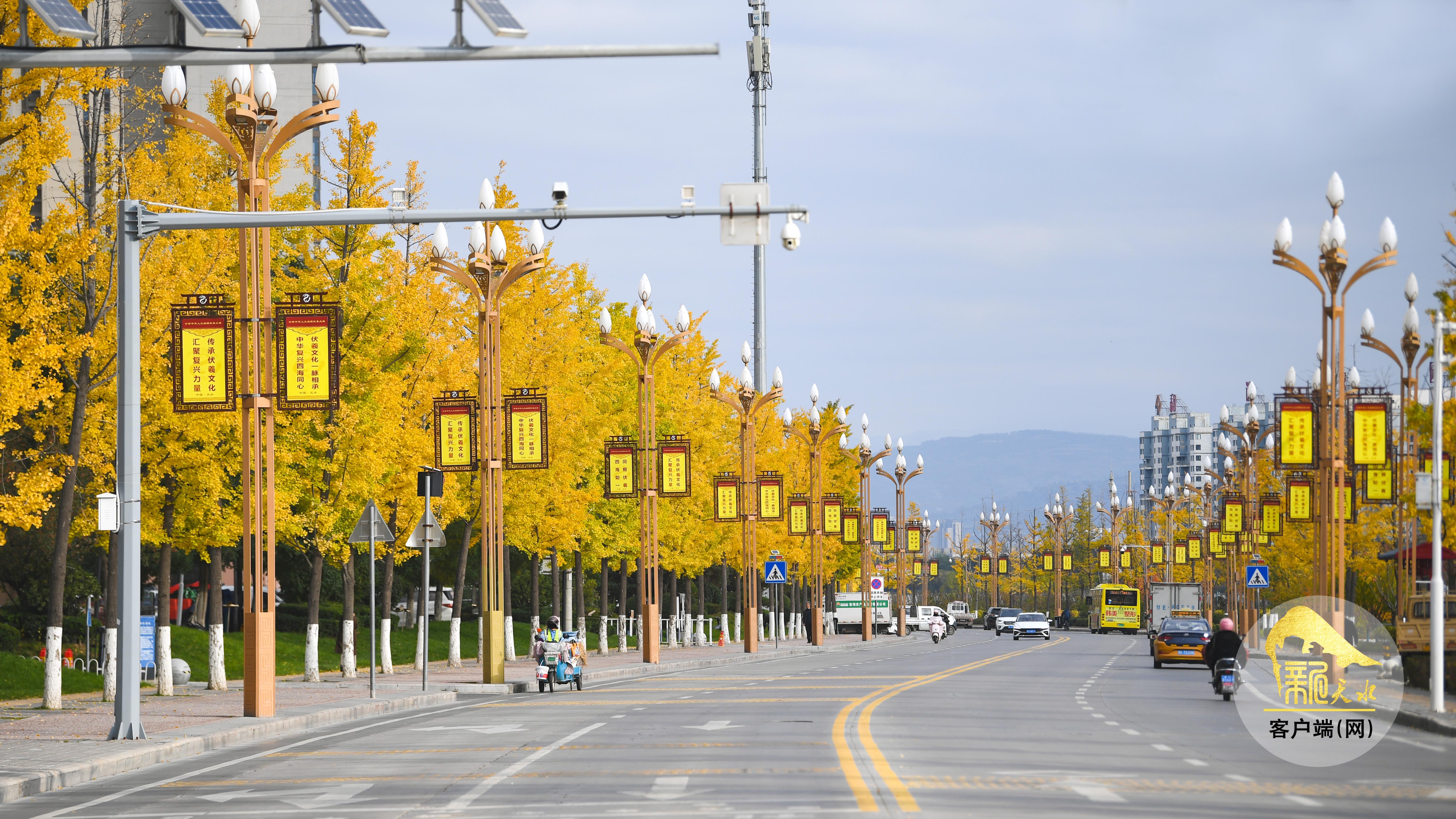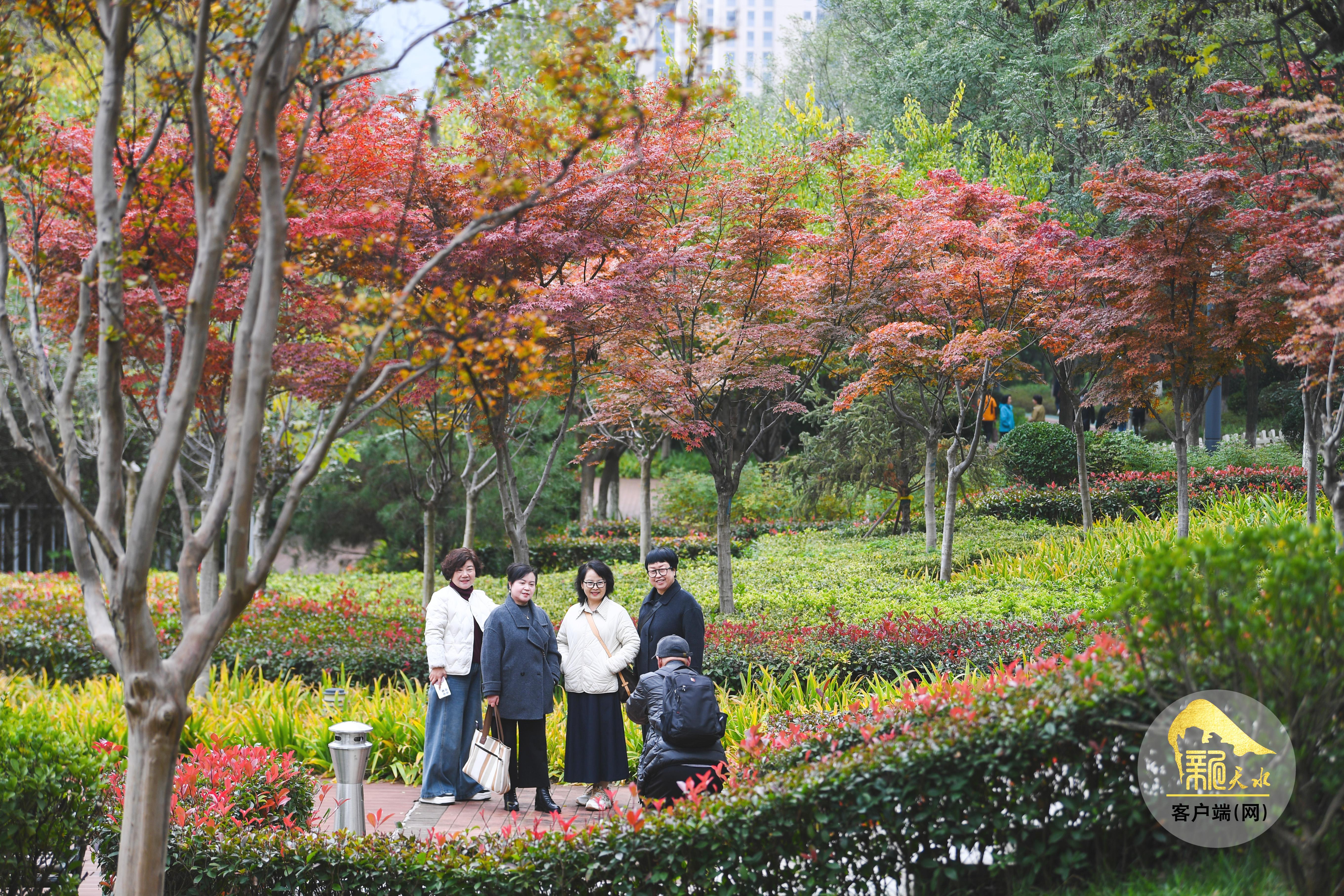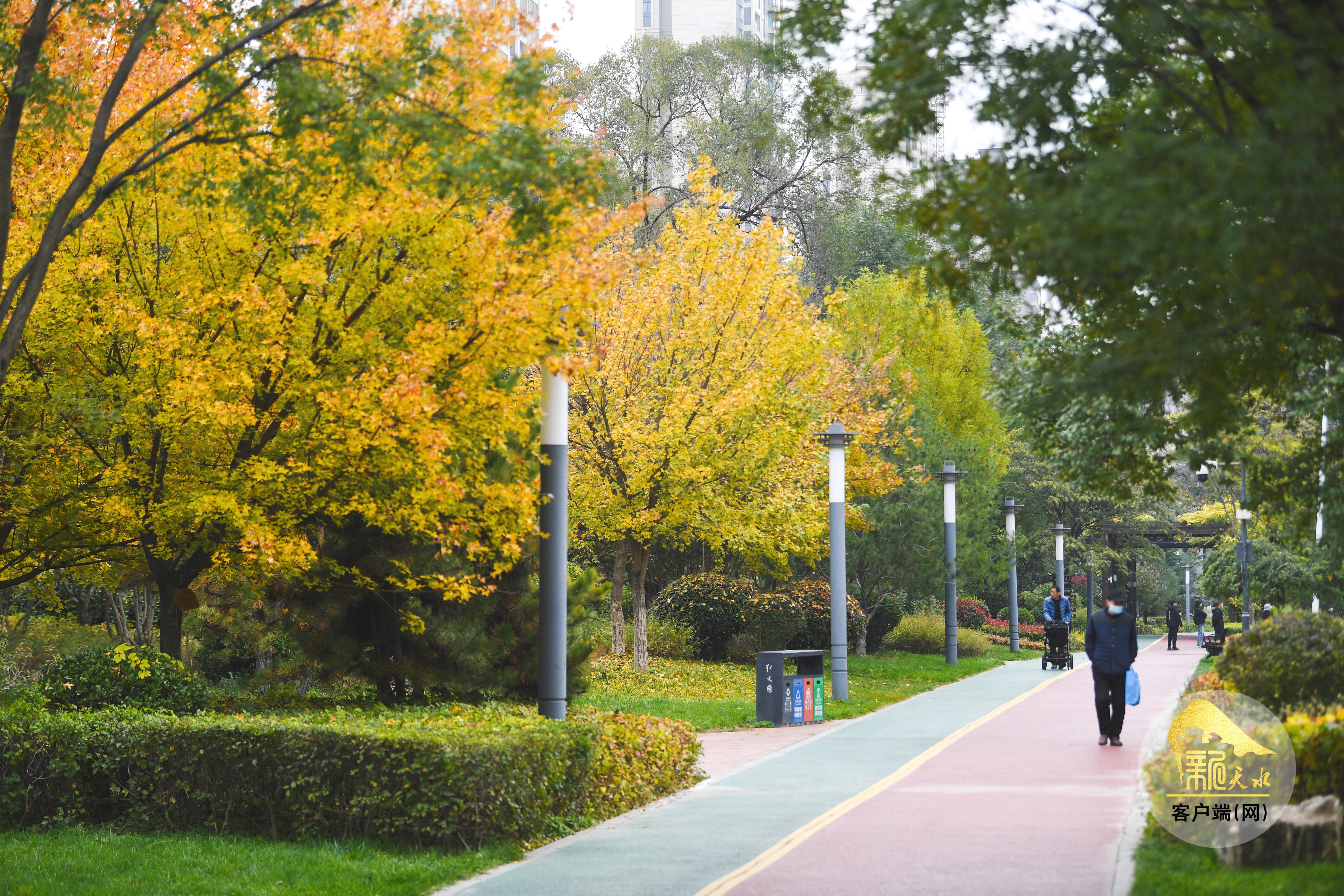 秋風蕭瑟,層林盡染。金秋的天水像是被大自然打翻的“調(diào)色盤”,金黃的銀杏、火紅的楓葉、橙黃的梧桐交織在一起,秋韻格外濃郁,色彩鋪展得恰到好處,放眼望去,如詩如畫的美景盡收眼底。