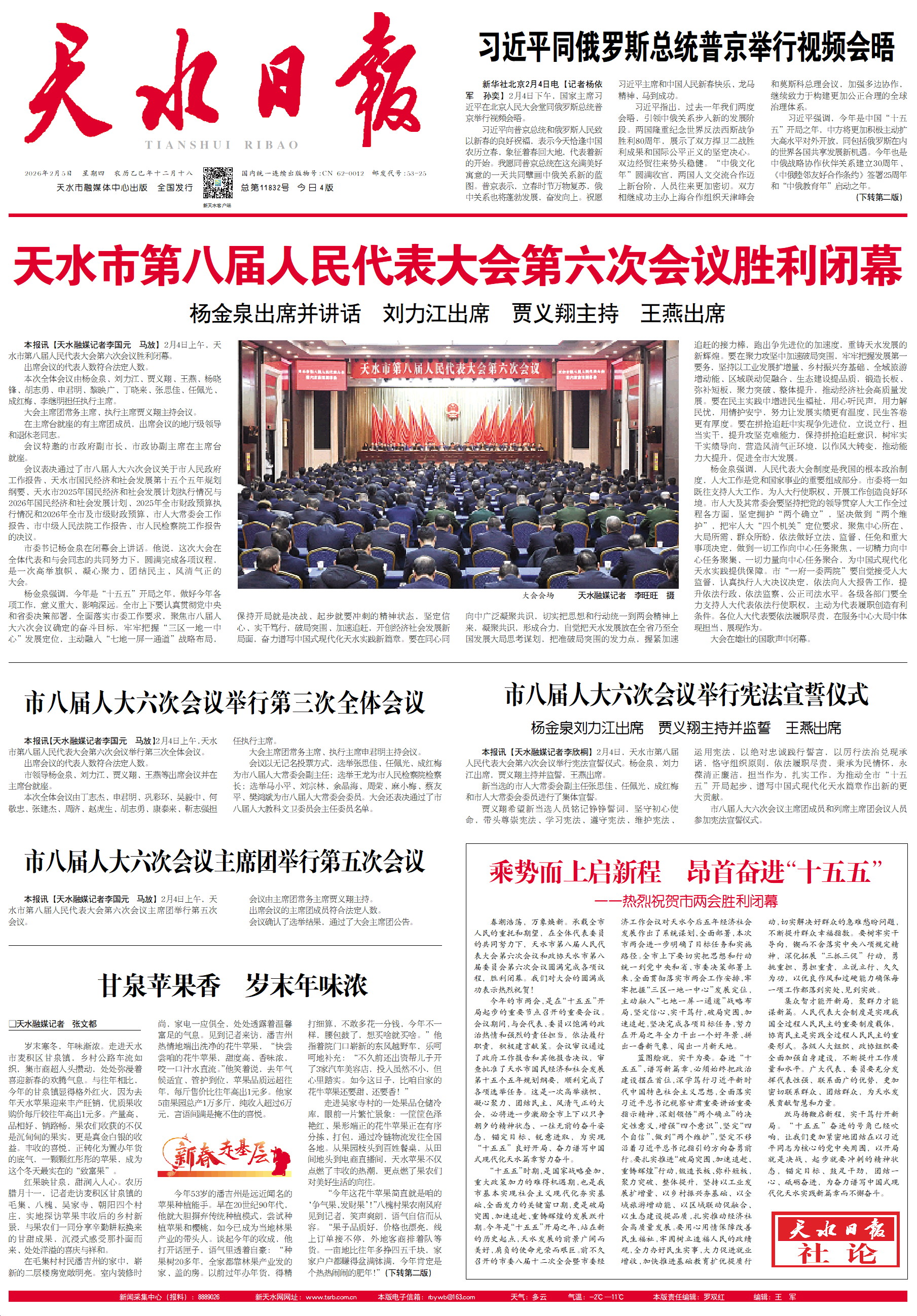 【天水日?qǐng)?bào)社論】乘勢(shì)而上啟新程 昂首奮進(jìn)“十五五”——熱烈祝賀市兩會(huì)勝利閉幕