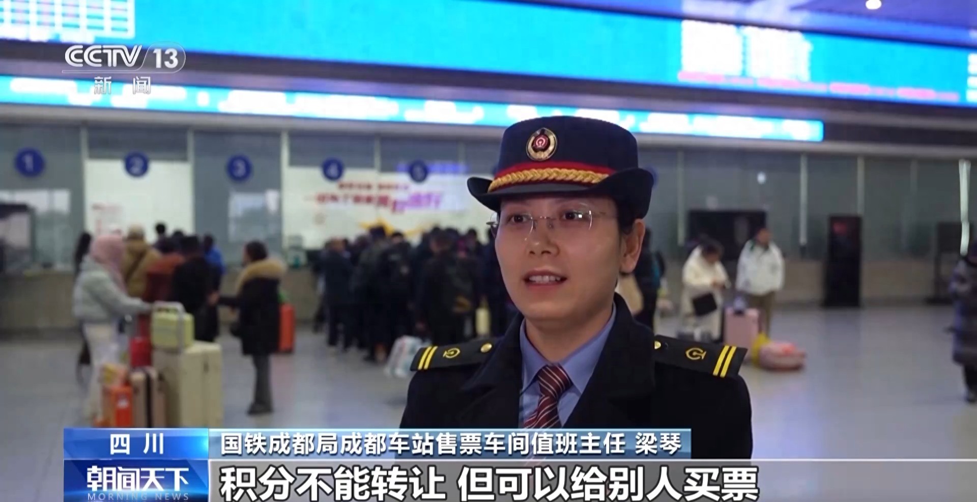 國鐵成都局成都車站售票車間值班主任 梁琴:積分不能轉(zhuǎn)讓,但可以給別人買票,每名會員最多可設置8名受讓人,受讓人須通過身份信息核驗,且添加成功60日(含當日)后才能生效。