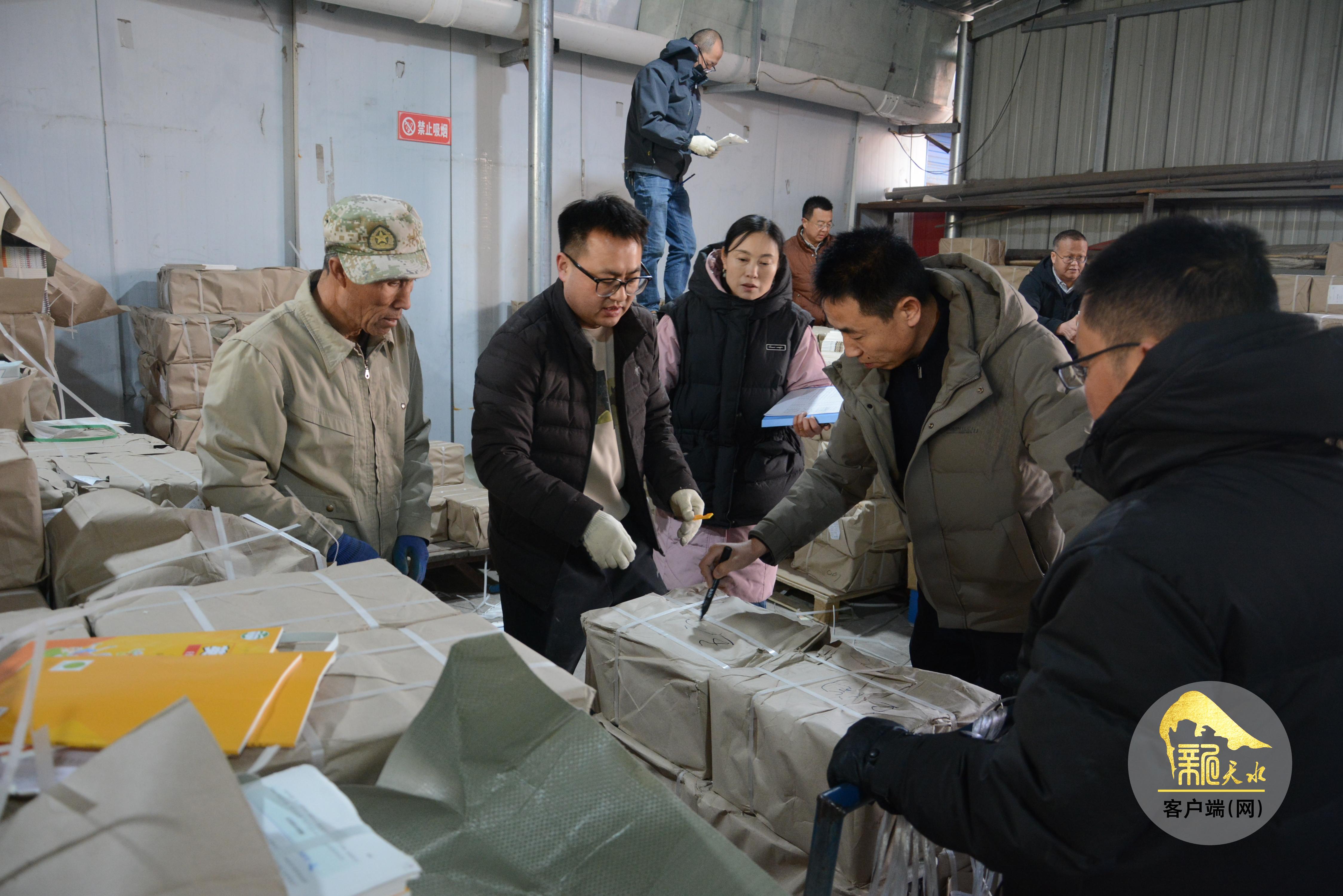 2月11日是天水市新華書店開展今年春季教材配送工作的第二天。記者在配送現(xiàn)場看到,教材儲(chǔ)備倉庫內(nèi)外一片忙碌景象。倉庫外,一捆捆打包好的新教材、教輔裝上貨車,碼放整齊。倉庫內(nèi),按照“分時(shí)段、分片區(qū)、分學(xué)?!钡呐判?,來自市五中、市公園小學(xué)、秦州區(qū)牡丹學(xué)區(qū)等城鄉(xiāng)學(xué)區(qū)、學(xué)校的老師,與書店工作人員分散在倉庫的不同區(qū)域,忙著核對(duì)配送數(shù)量、清點(diǎn)包件、搬運(yùn)裝車。
