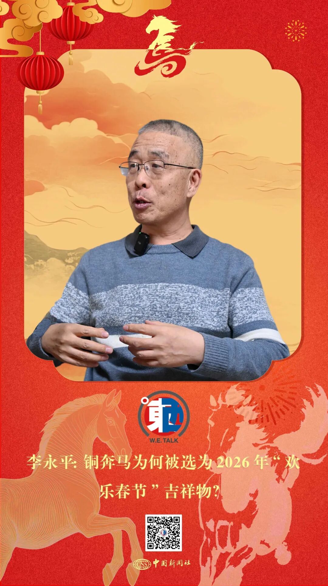 李永平:2026年是中國“十五五”規(guī)劃的開局之年,而馬又象征著力量、活力和進(jìn)步,代表著熱情、奔放、勇氣和進(jìn)取心等特質(zhì)。出土于甘肅武威市雷臺東漢墓葬的銅奔馬,因其構(gòu)思奇妙,造型獨(dú)特,鑄造精美,成為中國古代青銅藝術(shù)品中罕見的杰作,被認(rèn)為是東西方文化交往、特別是古絲綢之路人文商貿(mào)往來的使者和象征。