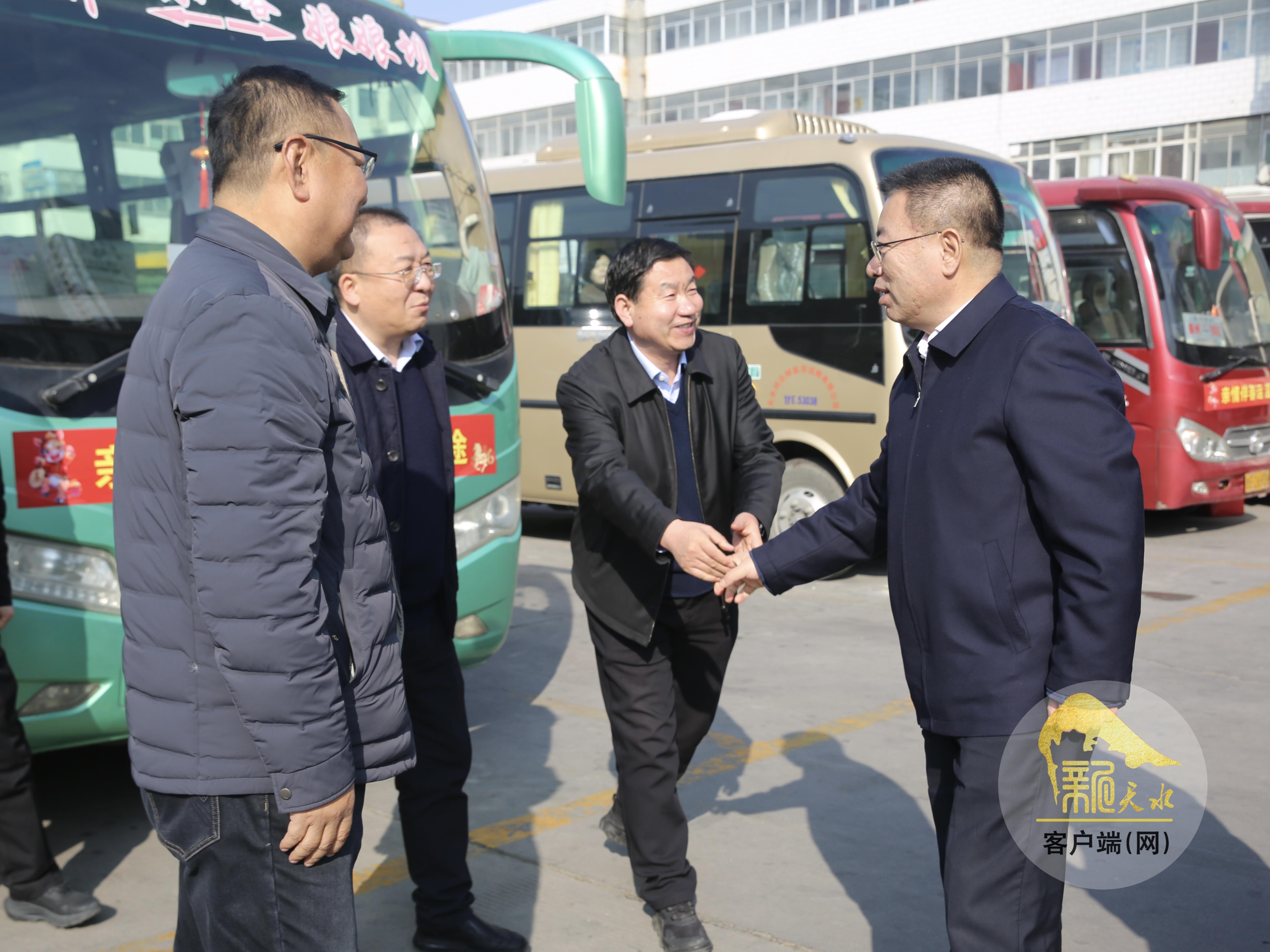劉力江還來到天嘉交運(yùn)集團(tuán)天水車站,檢查安全生產(chǎn)管理制度落實(shí)、運(yùn)力儲備調(diào)配等情況,叮囑企業(yè)要嚴(yán)格落實(shí)安全生產(chǎn)主體責(zé)任,嚴(yán)把車輛安全關(guān),加強(qiáng)駕駛員安全教育,做好值班值守和應(yīng)急處置,優(yōu)化便民服務(wù)舉措,筑牢春運(yùn)安全防線,確保群眾平安歡樂過節(jié)。