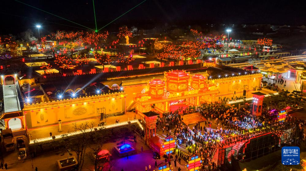2月10日,河南省三門峽市陜州地坑院燈會展區(qū)游人如織(無人機照片)。新華社發(fā)(孫猛 攝)
