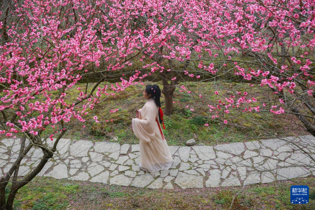 2月12日,游客在湖南省湘西土家族苗族自治州永順縣靈溪鎮(zhèn)土家竹梅山寨陳家坡賞梅。新華社發(fā)(曾勇 攝)